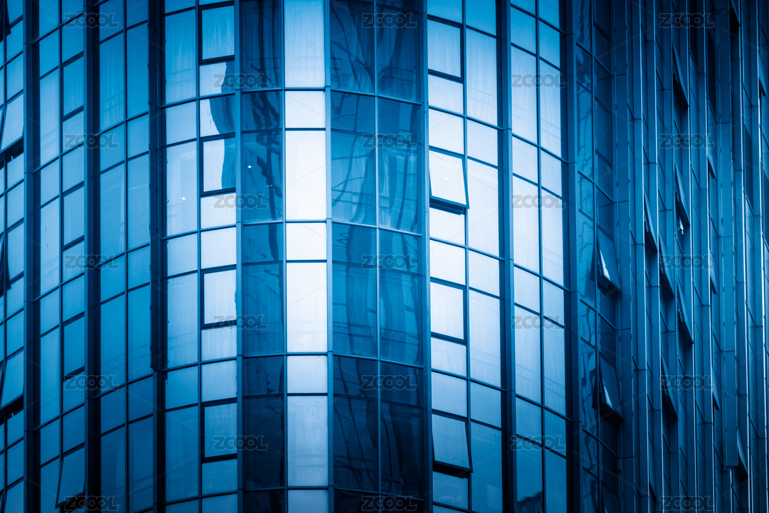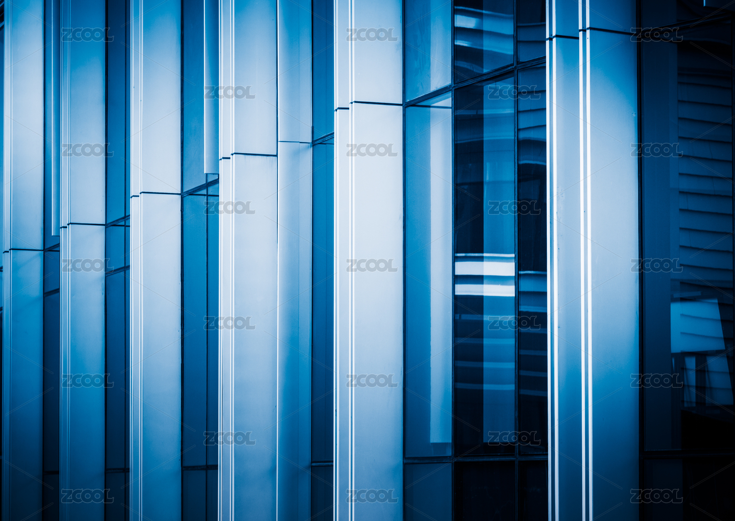 抽象的建筑摩天大楼的蓝色玻璃墙