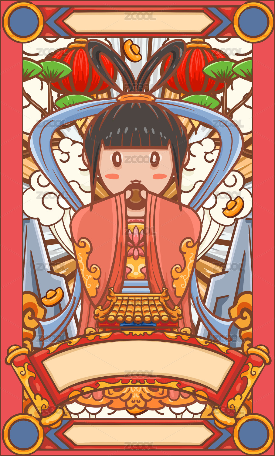 Q版古风女生半身插画 矢量风格插画