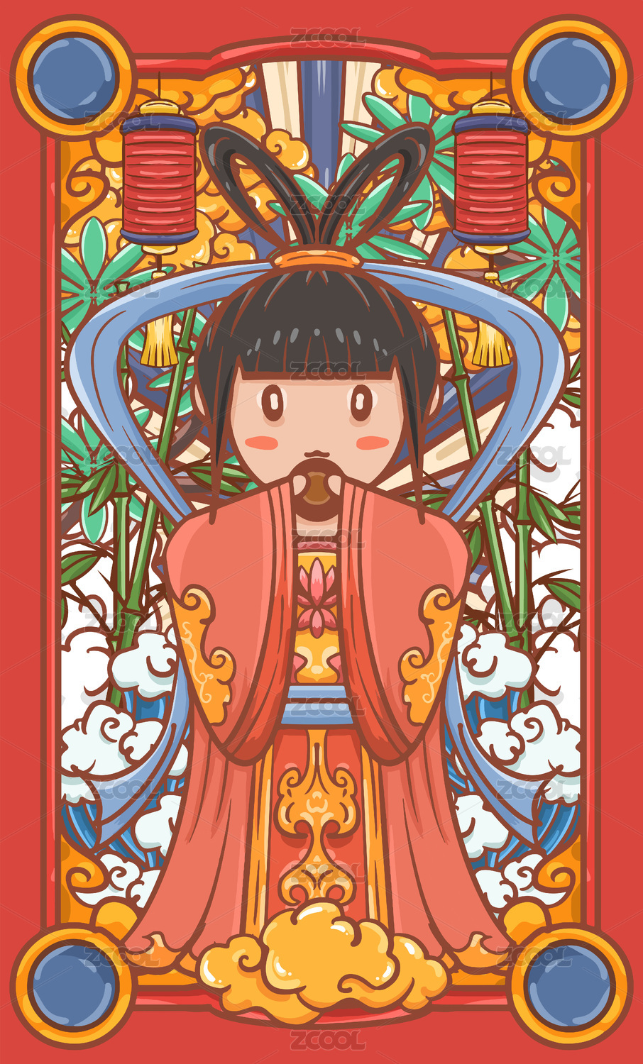 卡通国潮中秋插画设计