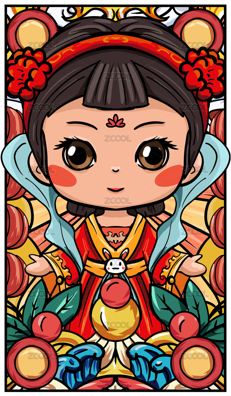 卡通国潮中秋卡通嫦娥插画设计
