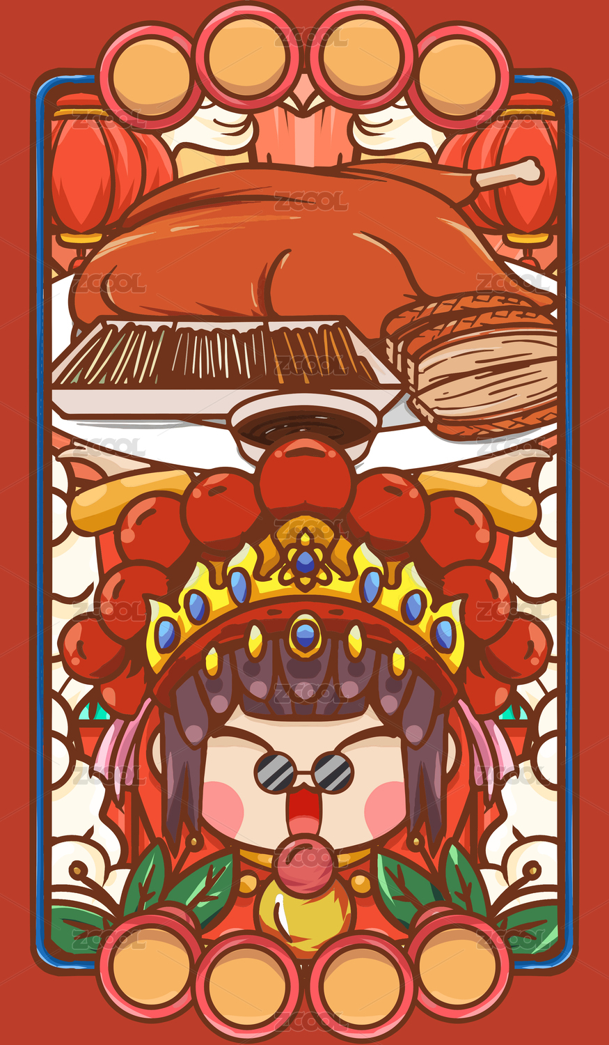 原创手绘卡通烤鸭插画海报素材