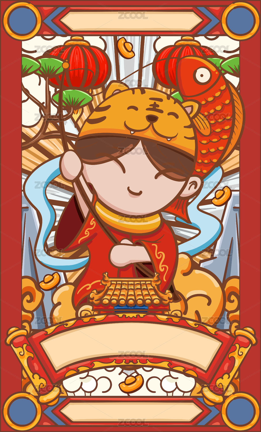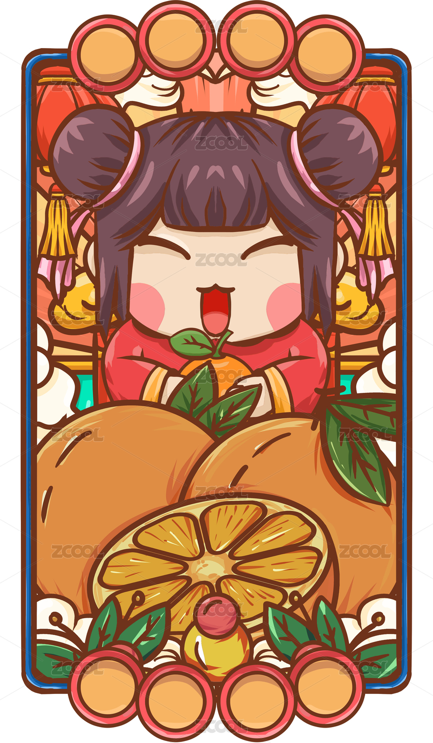 手绘卡通国潮年画娃娃设计