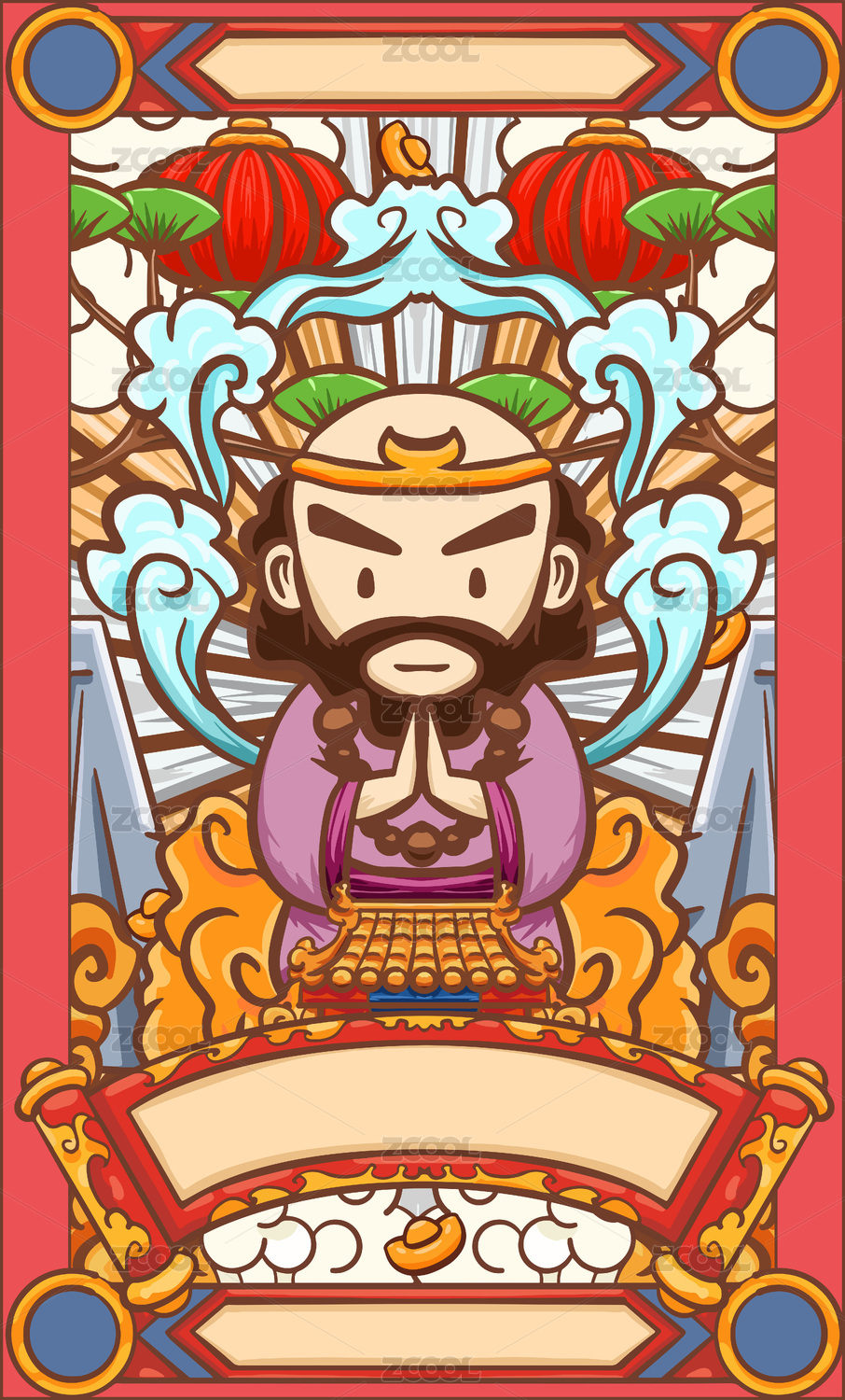 手绘卡通财神爷转运海报设计