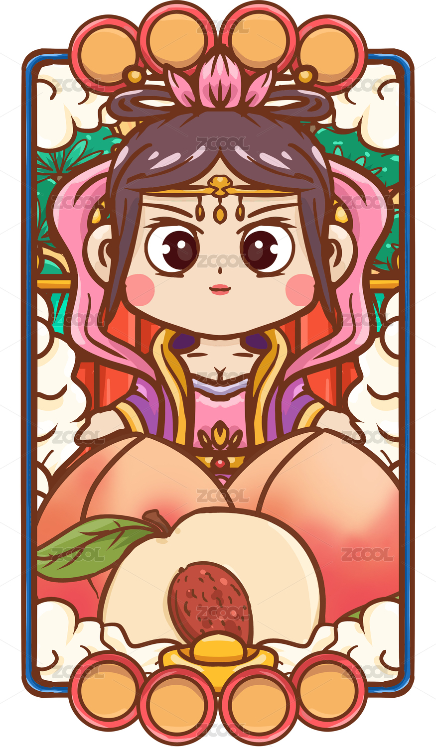 原创手绘卡通桃子水果插画海报素材