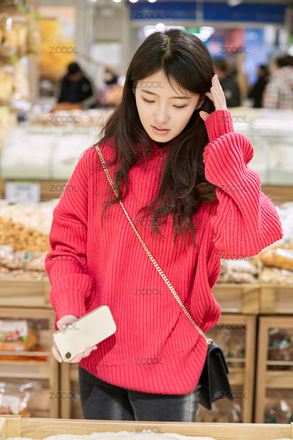 逛超市购物的亚洲美女
