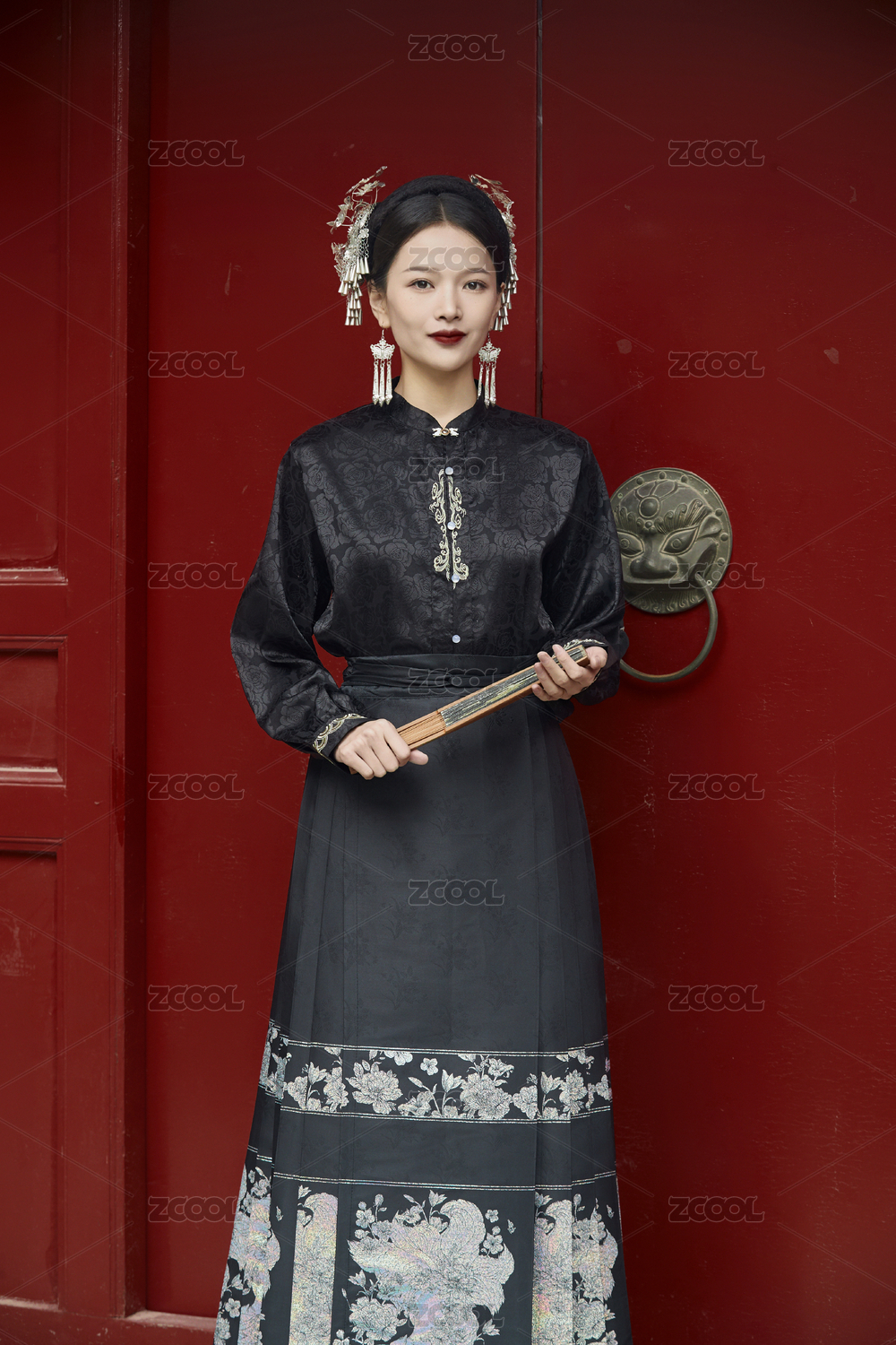 人物,汉服,古城,女性,复古,黑头发,美女,传统文化,中国风,肖像