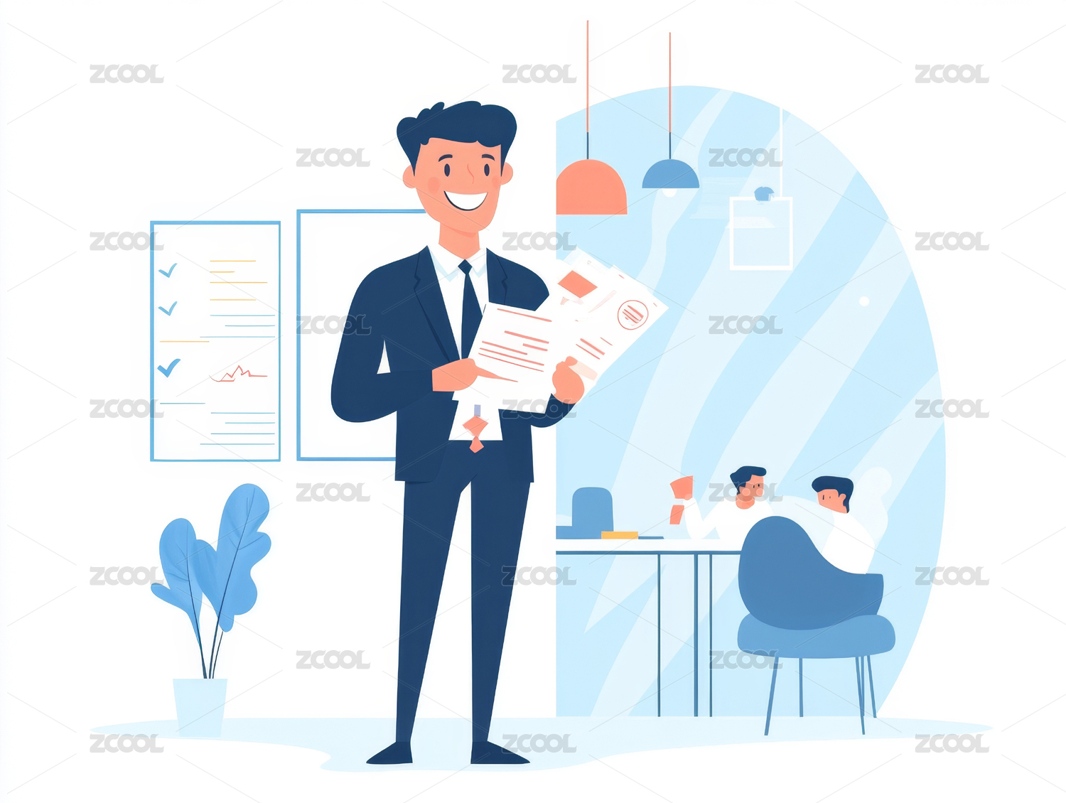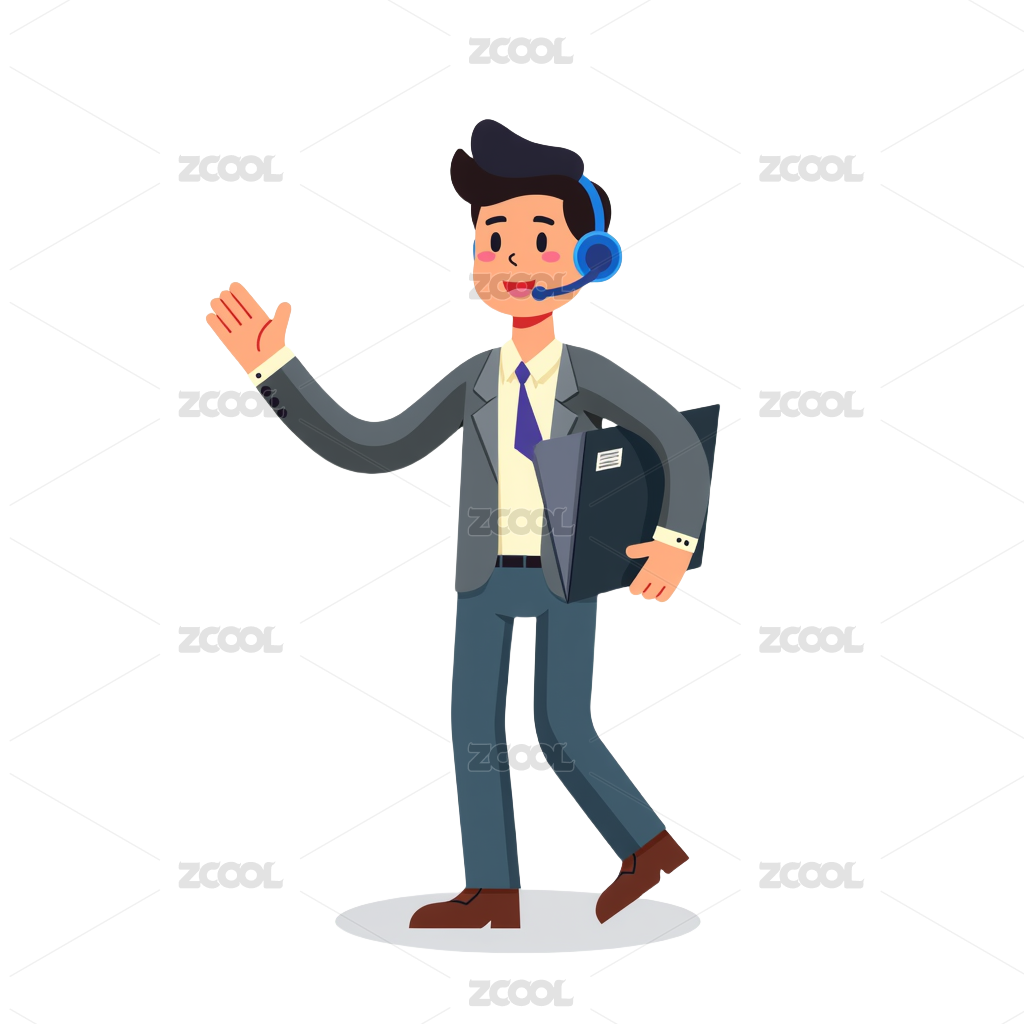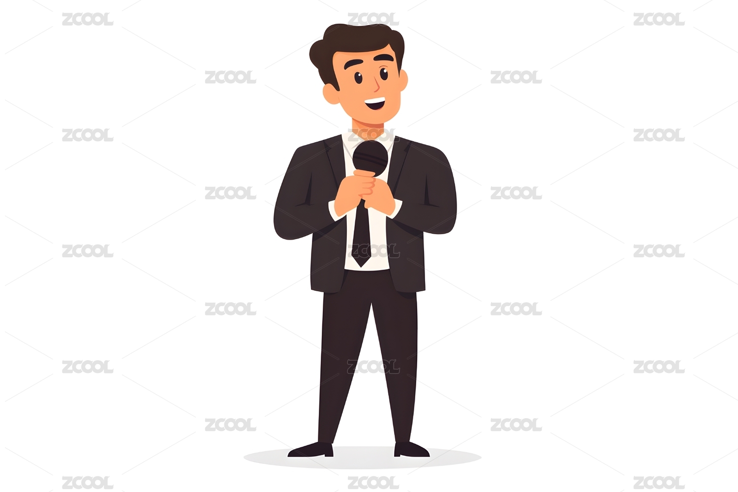 男青年,主持人,西装,商务,矢量,扁平,插画,演讲稿,OK,点赞