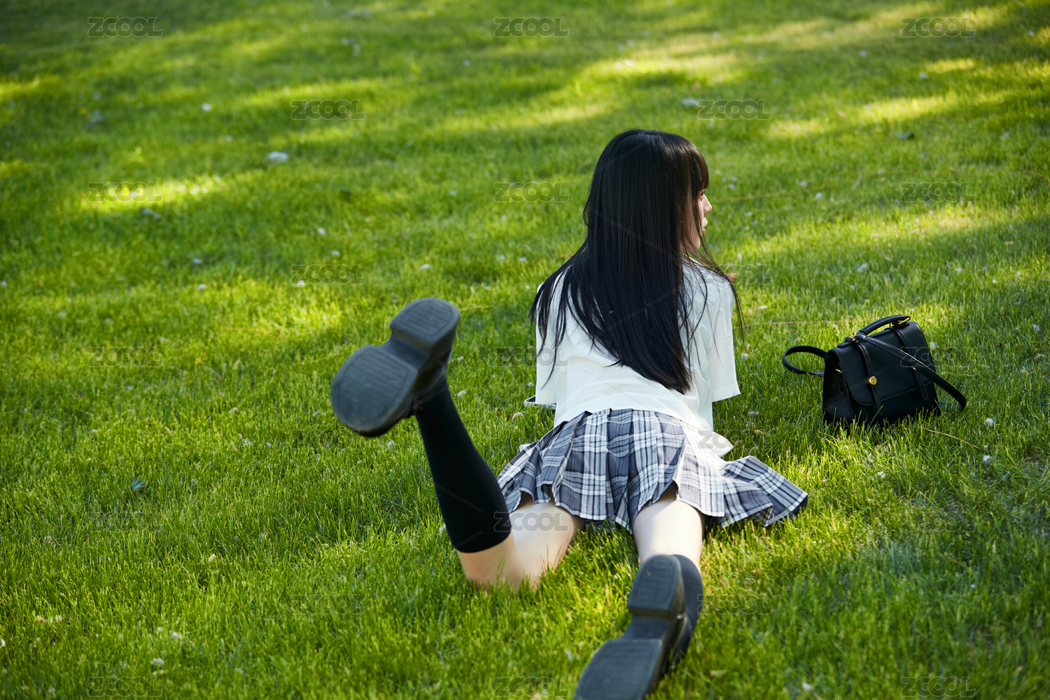 草坪,高中女生,可爱,乐趣,女孩,女人,漂亮的,人像,生活方式,夏季