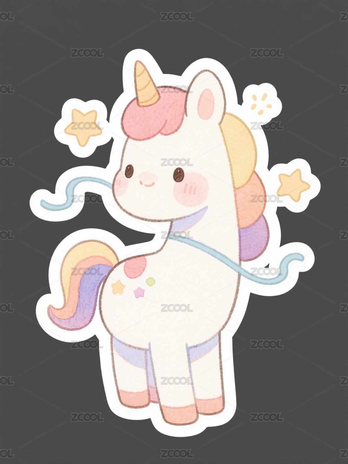 粉色,独角兽,粉马,彩虹马,爱心,星星