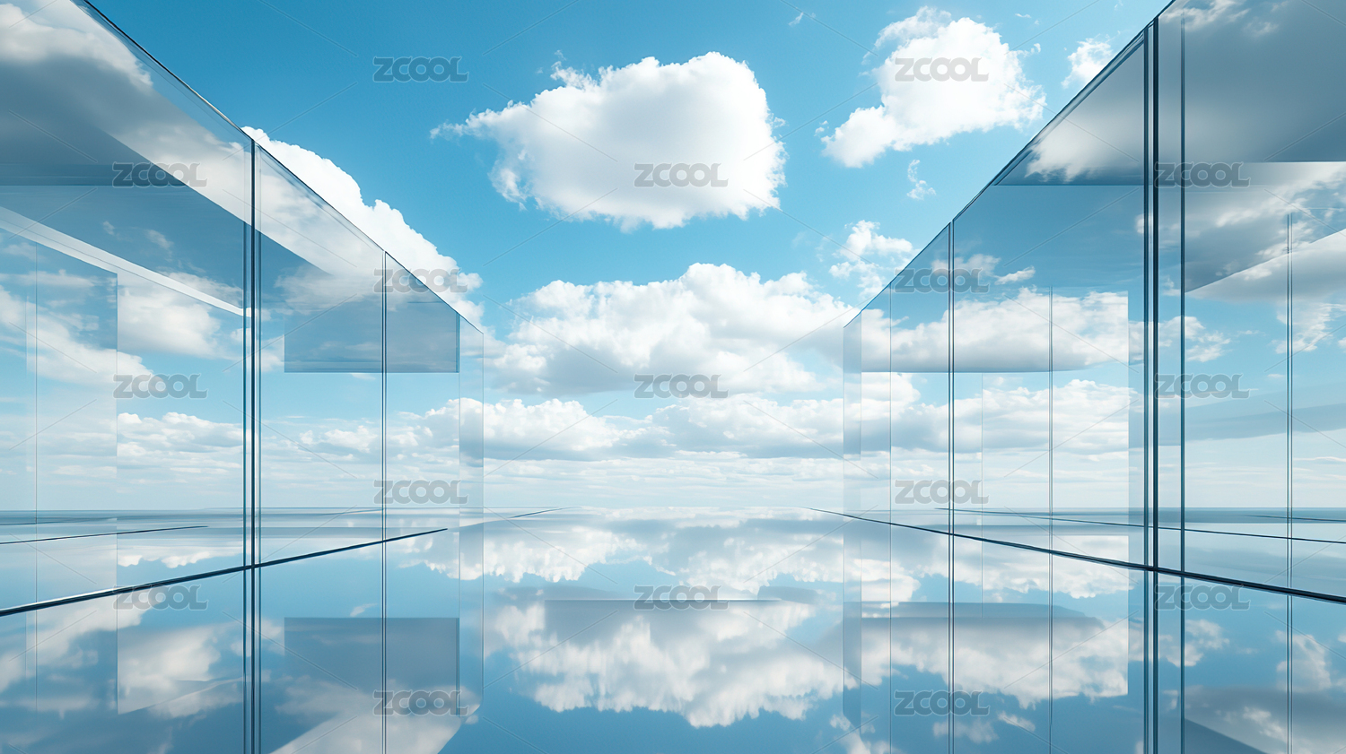 3D渲染玻璃与蓝天白云