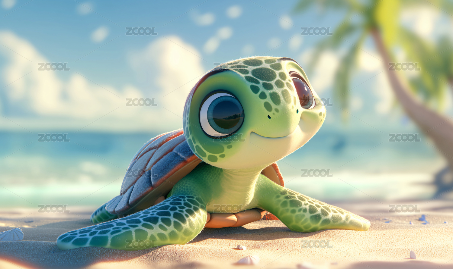 乌龟海龟可爱唯美野生动物3D卡通插画壁纸