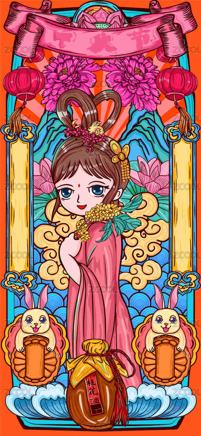 中国,传统,习俗,佳节,节日,圆月,月亮,扁平,扁平化,植物