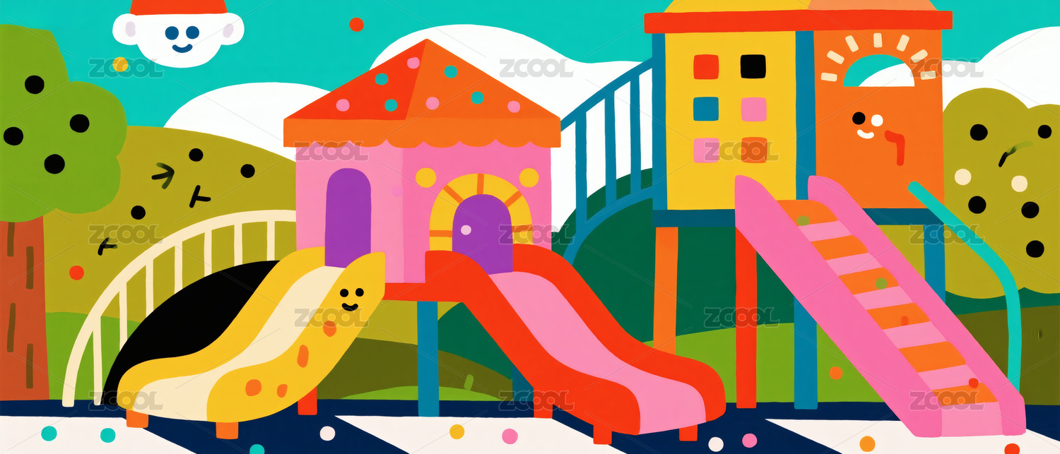 移动的小火车将学校游乐场家庭父母都连在了一起孩子可以无忧无虑快乐游玩矢量插画