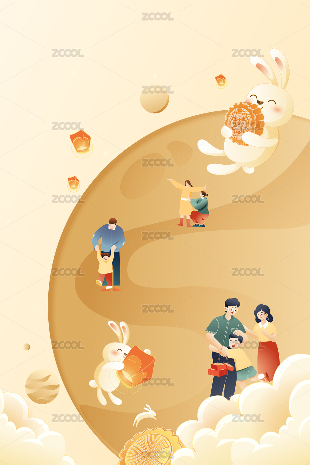 中秋节亲子家人矢量插画