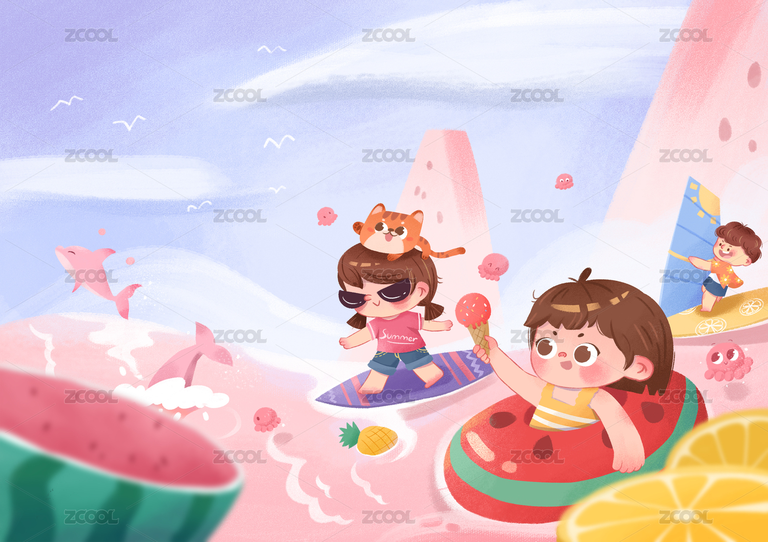 夏日小孩和西瓜
