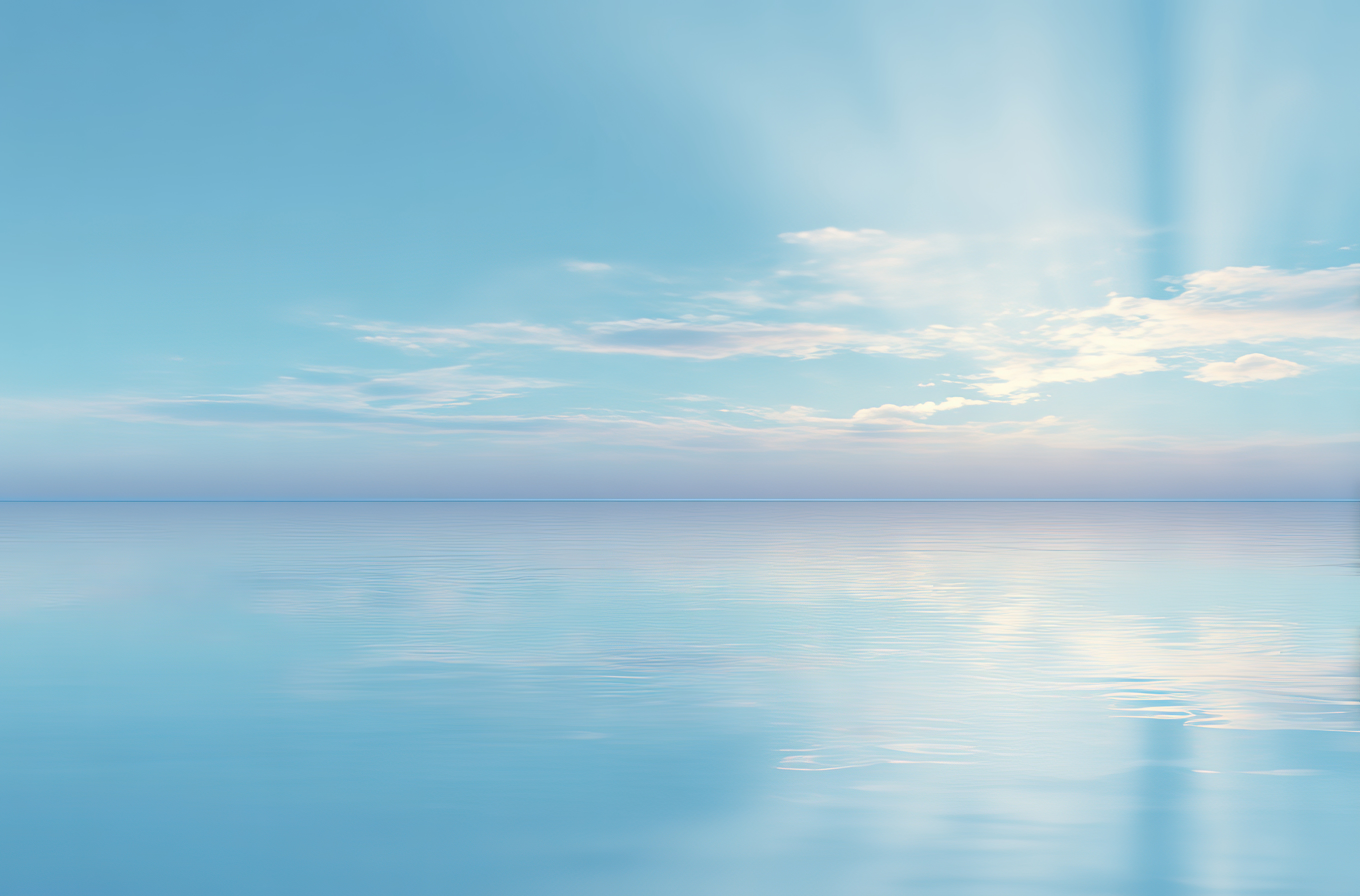 平静海面与蓝天相接的景象