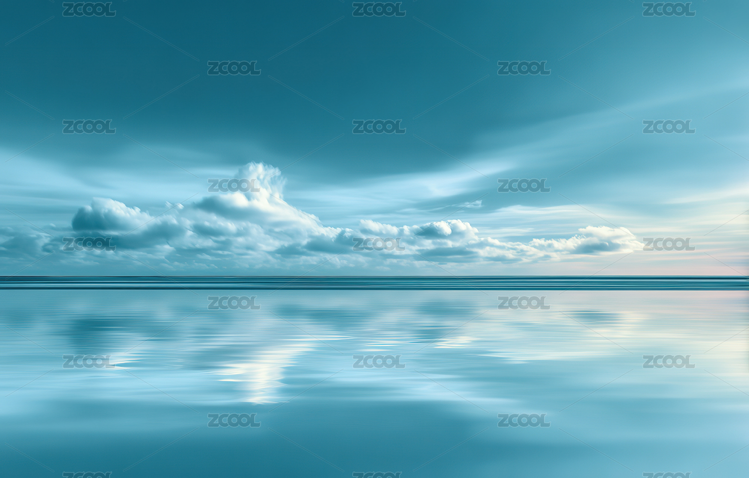 宁静海面与蓝天白云倒影