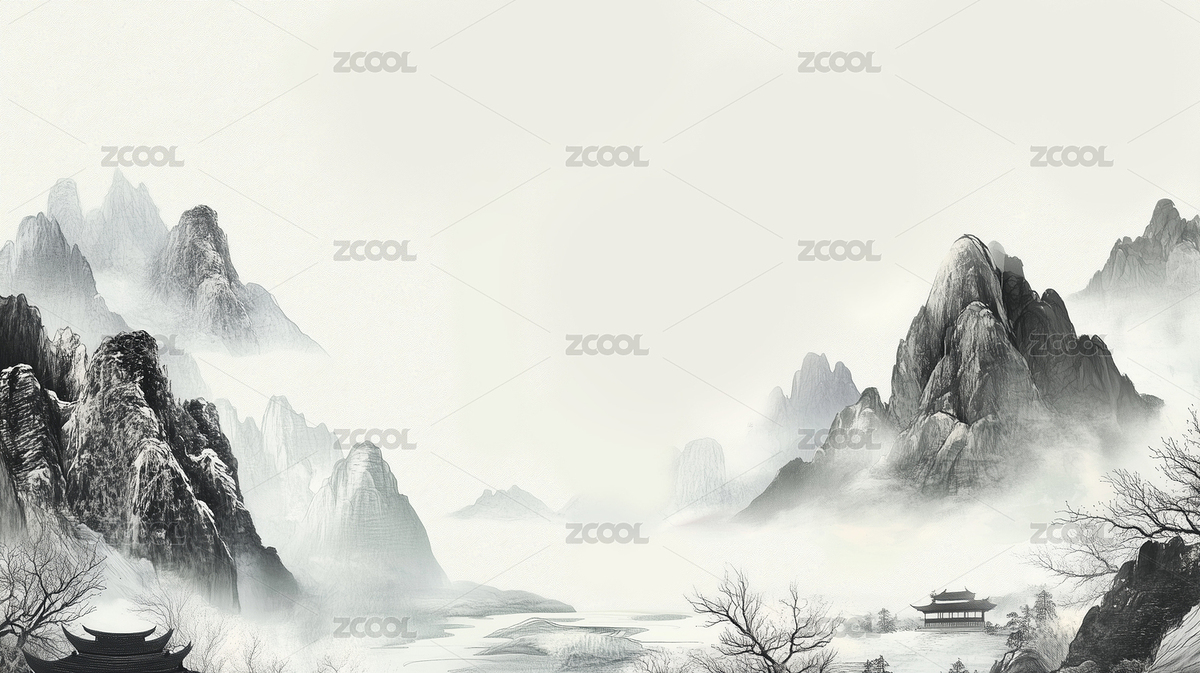 山水,国画,水墨画,写意,工笔画,中式,中国,传统,艺术,大雁