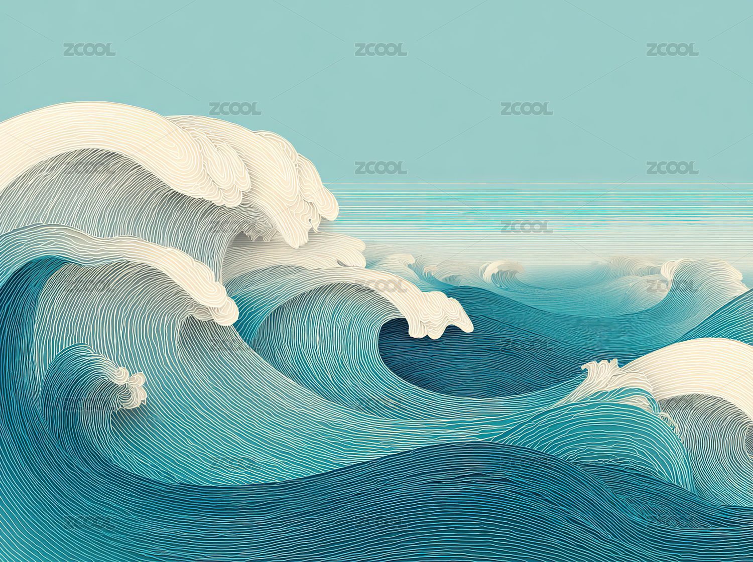 海浪表面纹理带有海泡沫的飞溅抽象蓝色背景