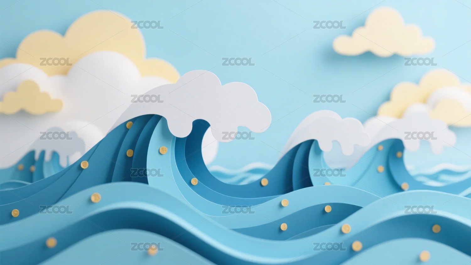 剪纸风格,大海,沙滩,背景,立体,海报,夏季,独家,假期,旅游