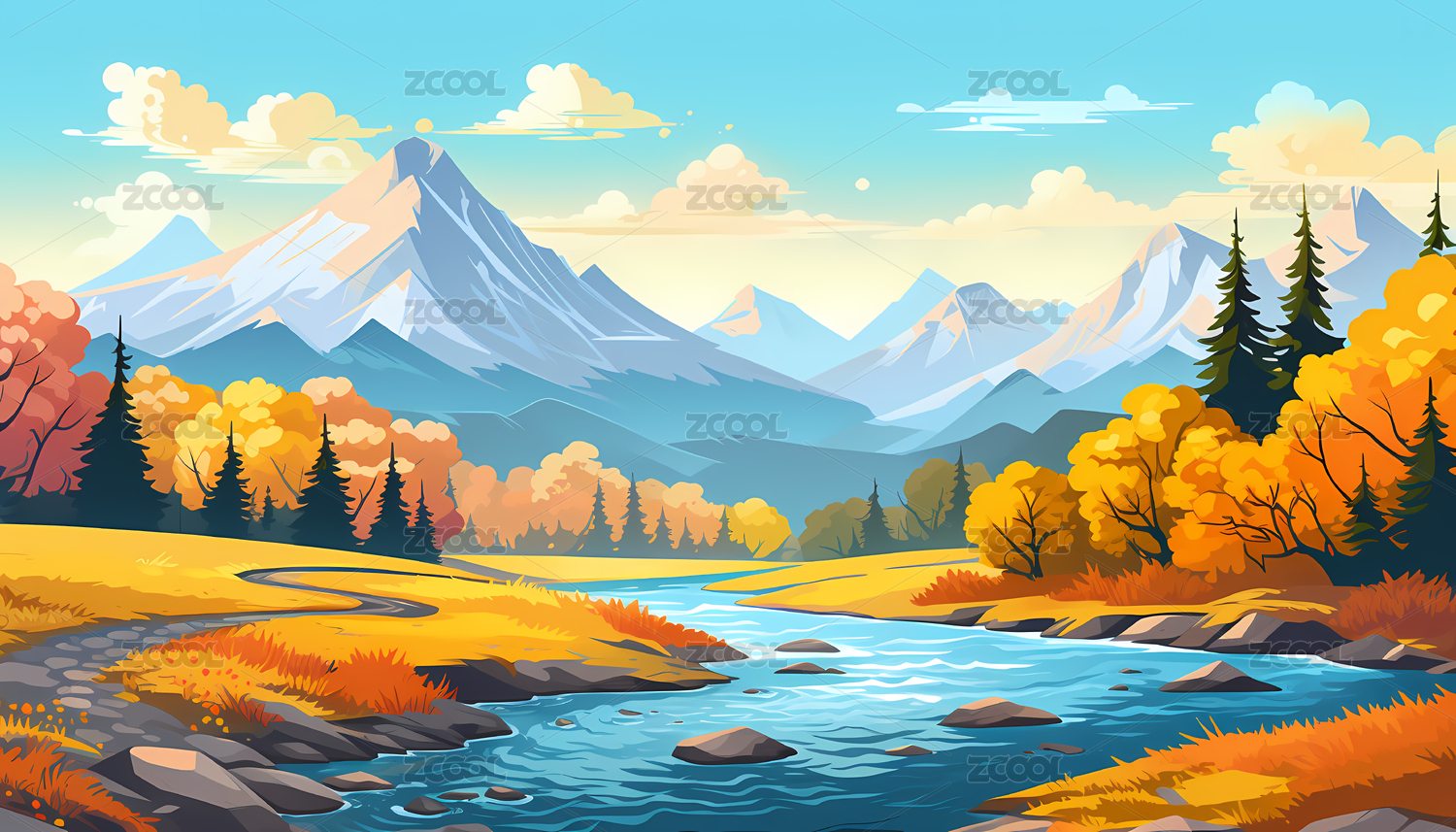 AI数字艺术,风景,自然,高山,地形,树,户外,插画,国风,天空