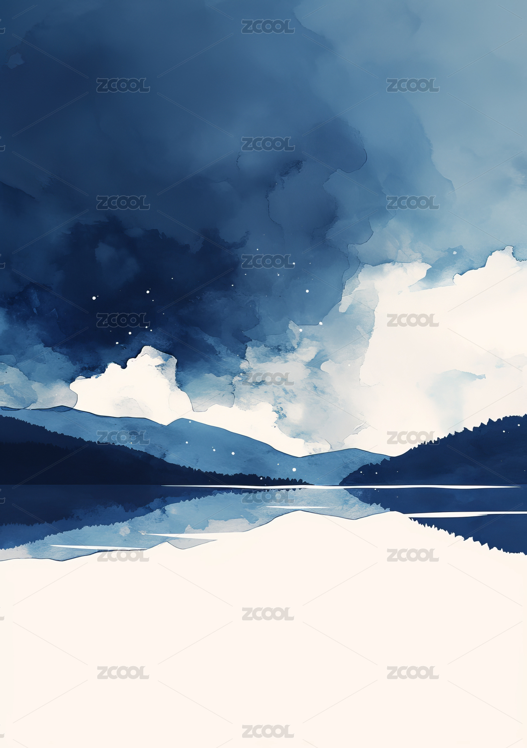 静谧湖光山色水墨意境