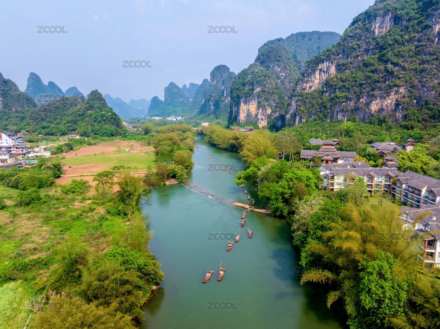 桂林阳朔漓江沿岸遇龙河自然风光山水航拍