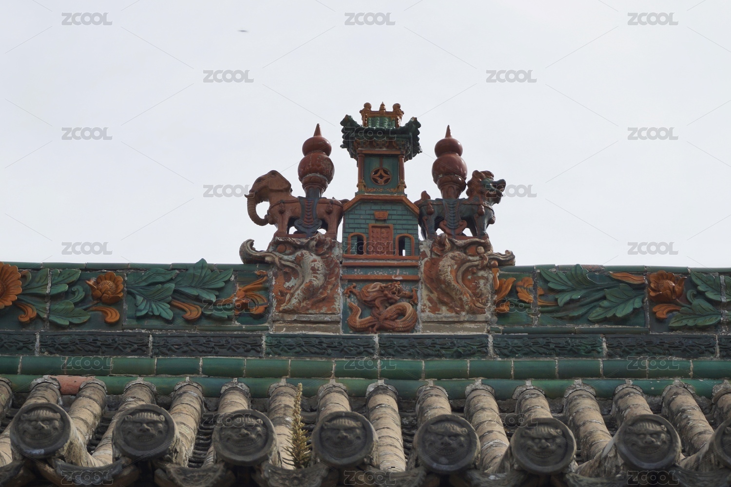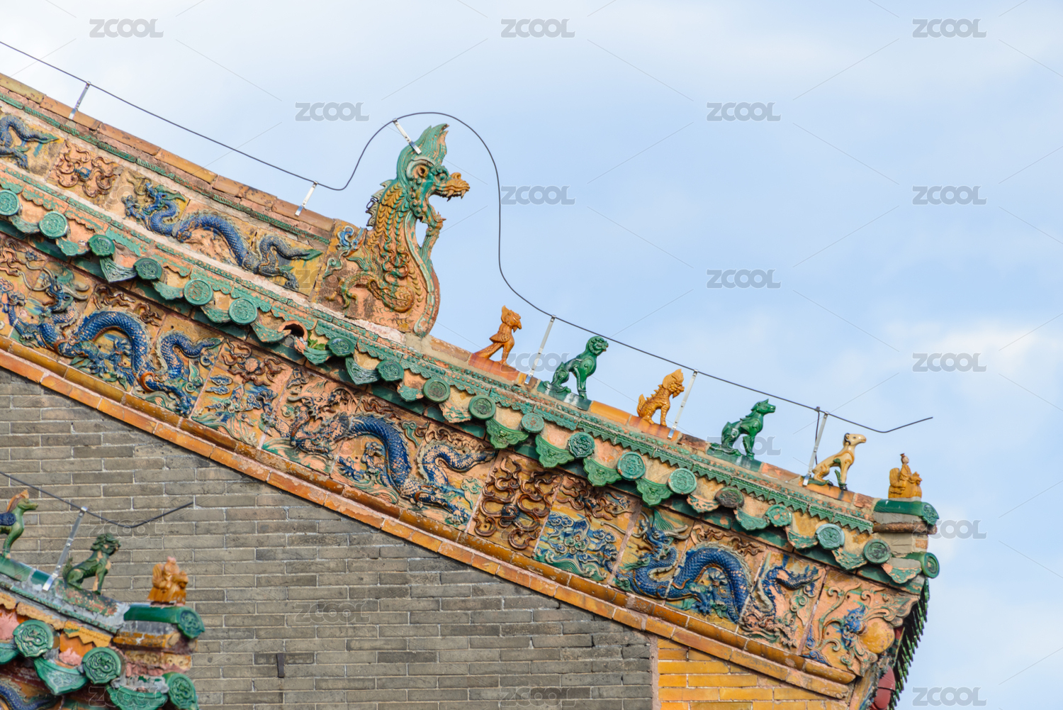 中国广州陈家祠岭南建筑屋顶灰塑陶塑