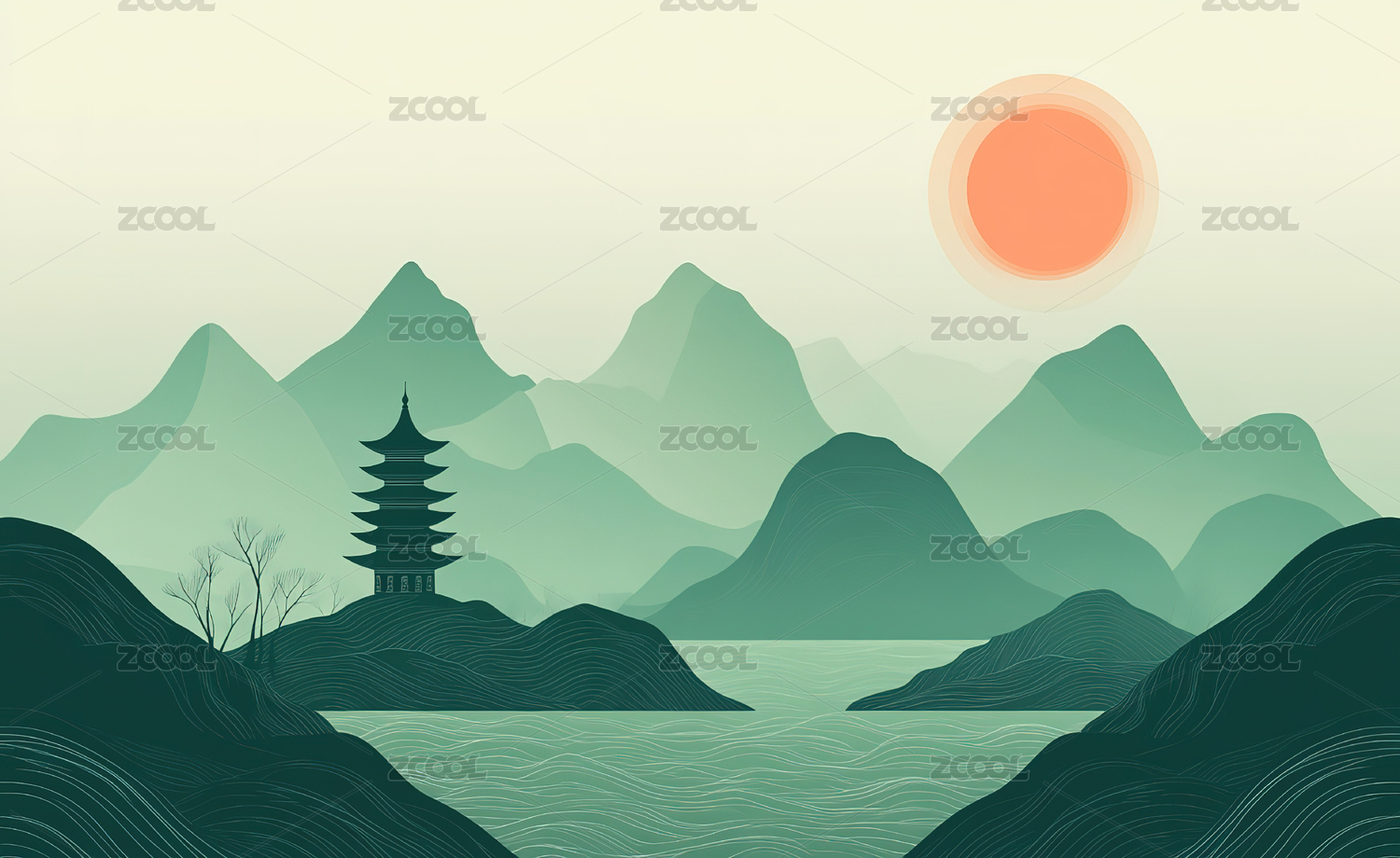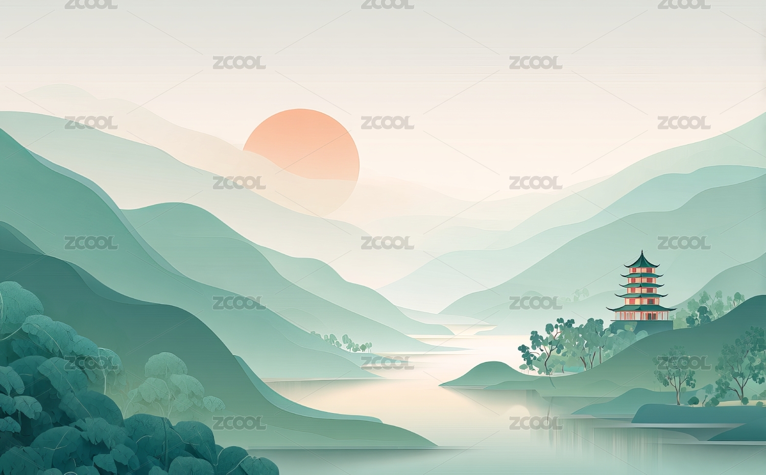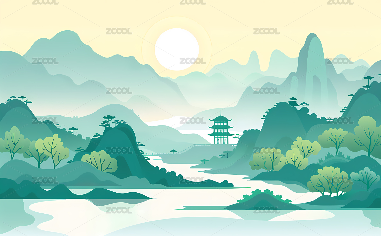 风景,天空,插画,云,自然,旅行,户外,树,海报,电子商务
