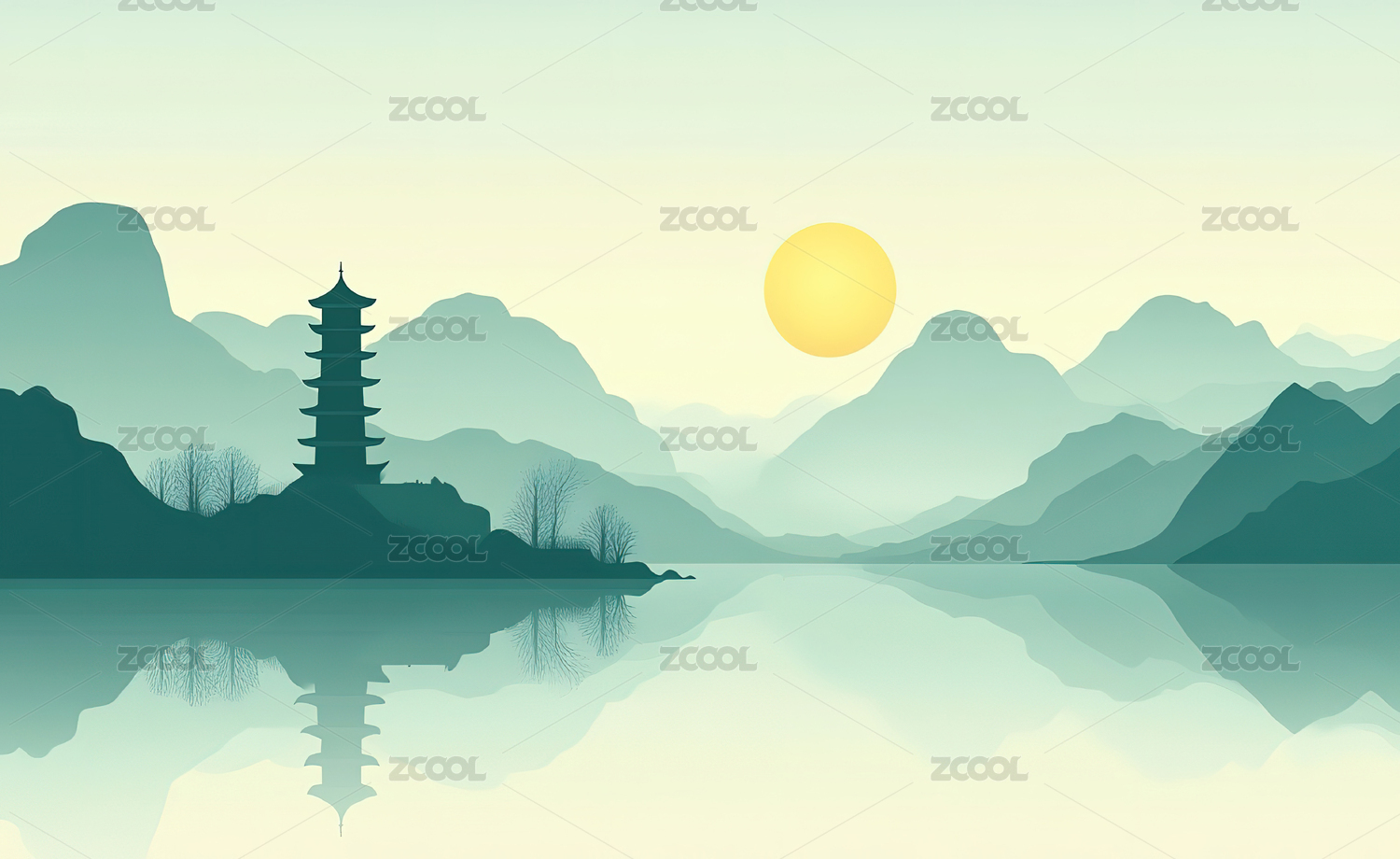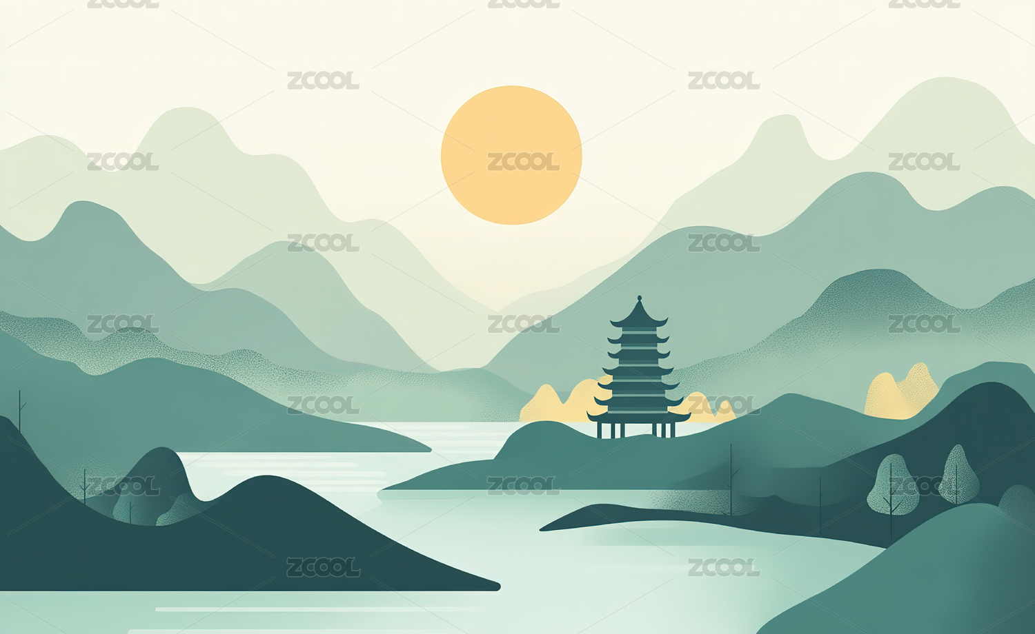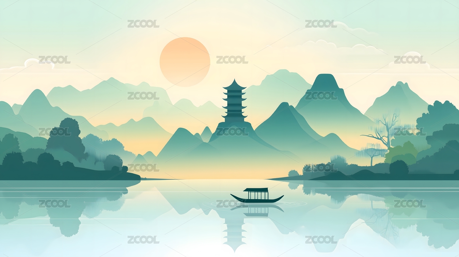 风景,天空,插画,云,自然,旅行,户外,树,海报,电子商务