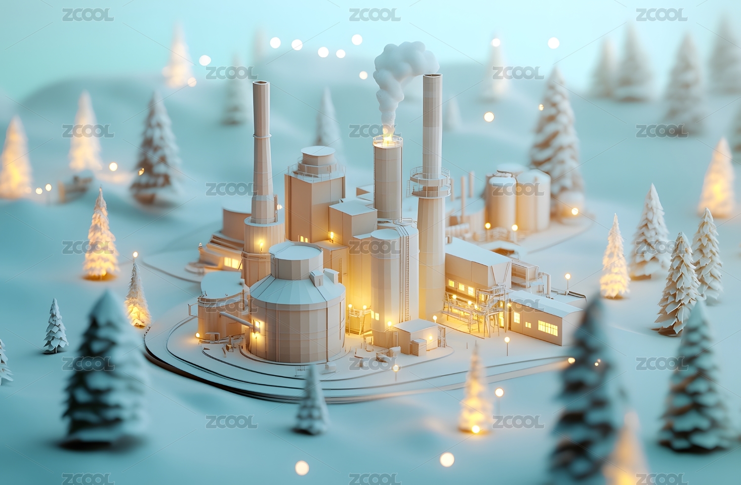 清洁智慧数字化工厂,3D渲染微缩模型风格