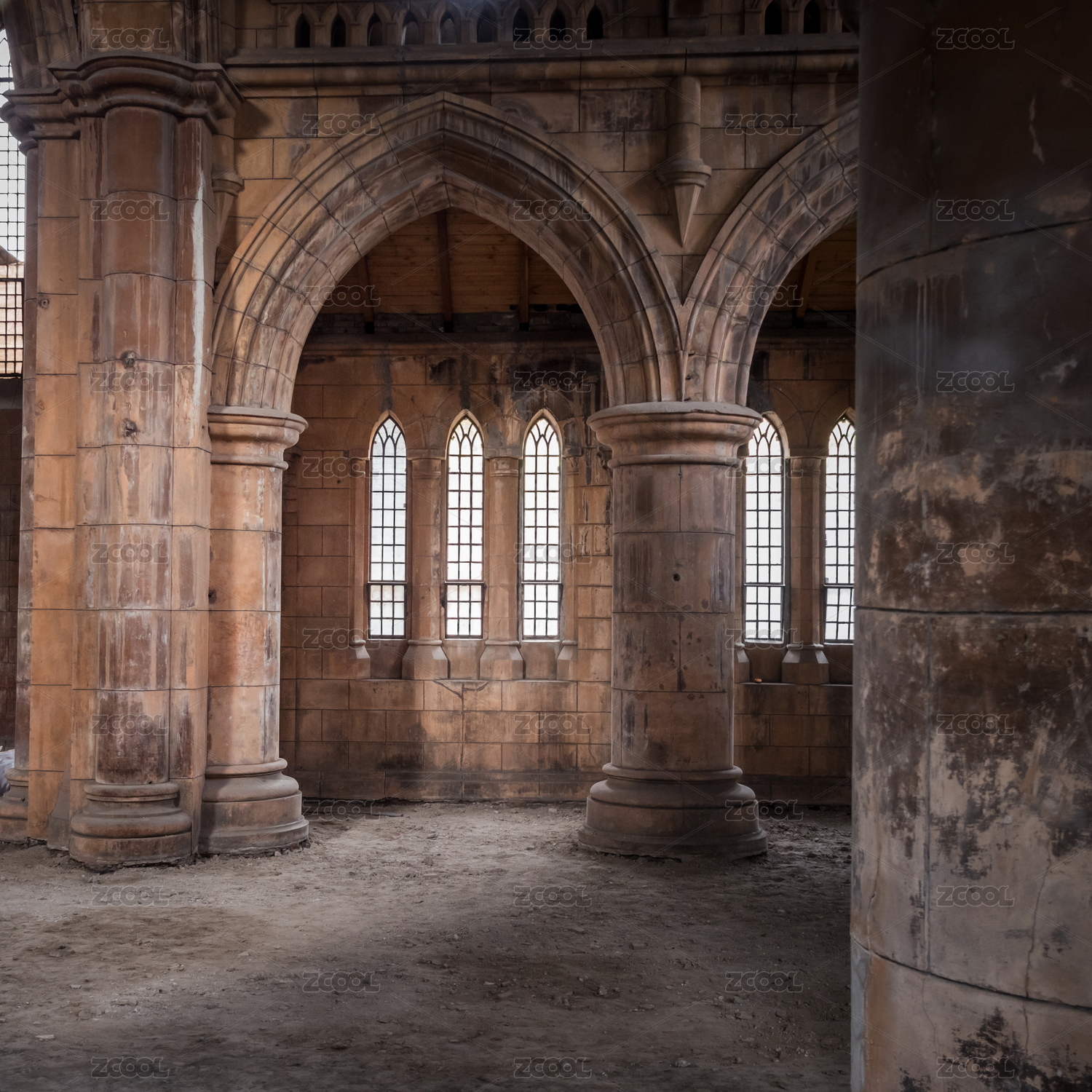 法国古老的中世纪修道院教堂内部空间