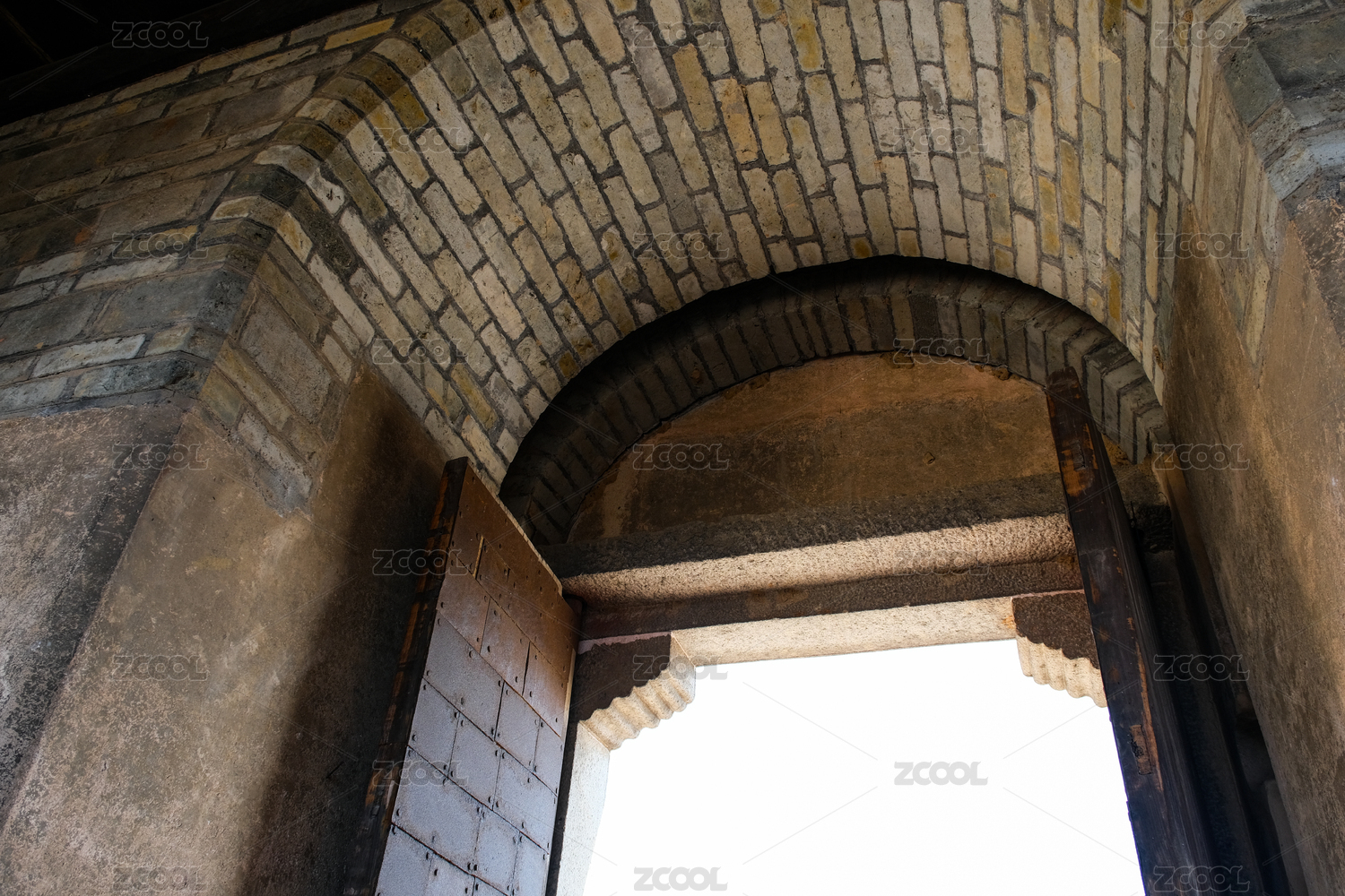 中式古建筑砖墙及拱形木门