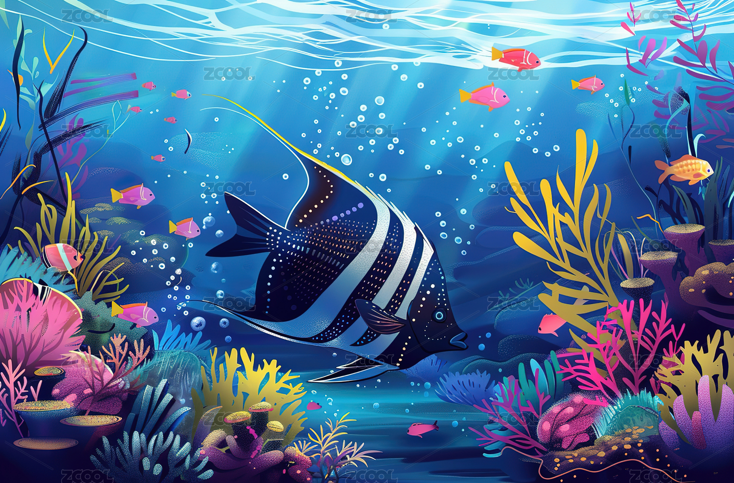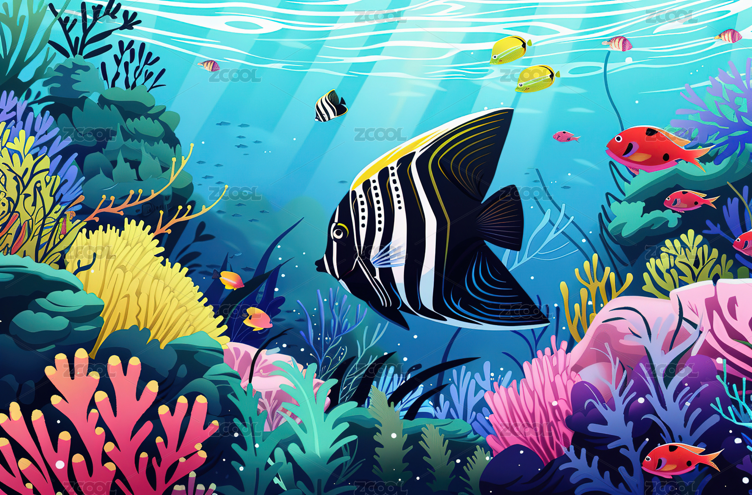 水下珊瑚鱼海景插画