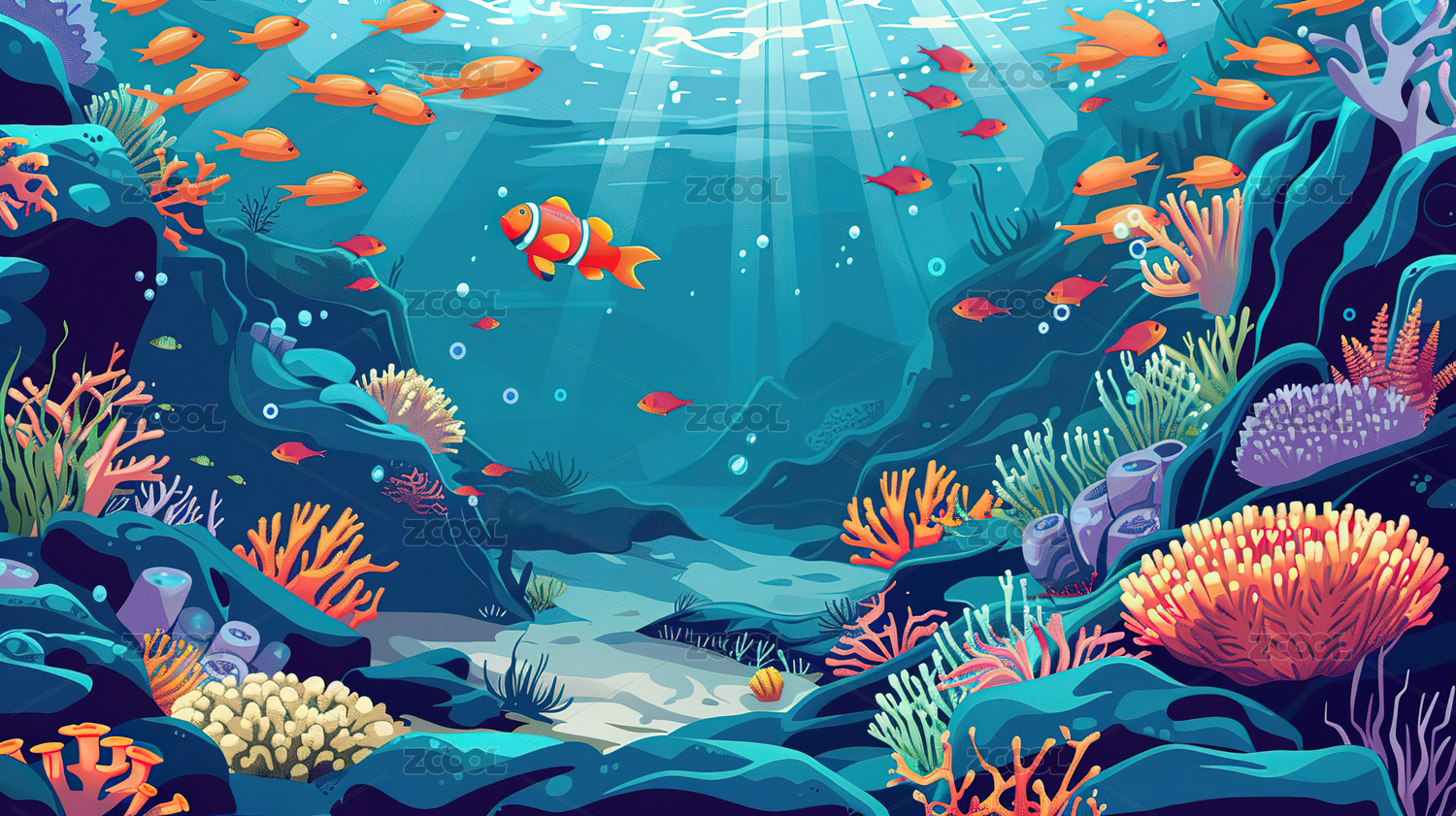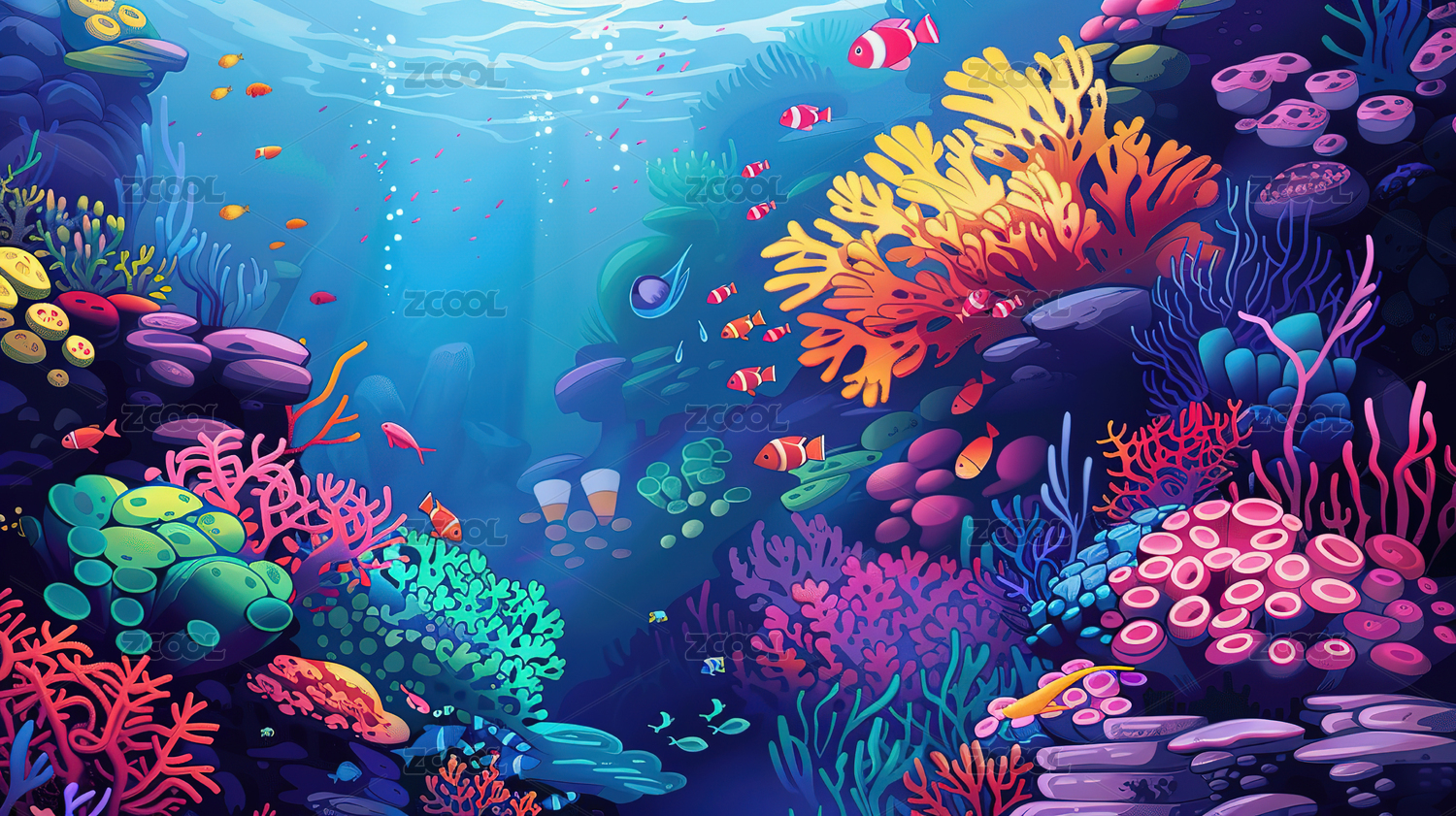 海底世界彩色插画壁纸