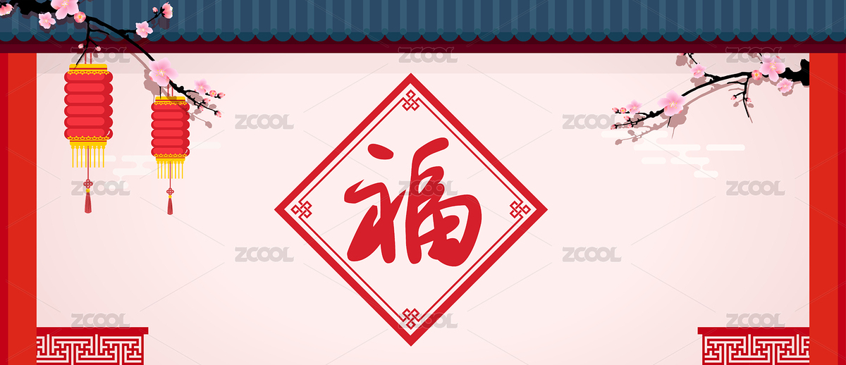 新年,新春,福气,春节,福字,灯笼,樱花,红灯笼,2021,年会