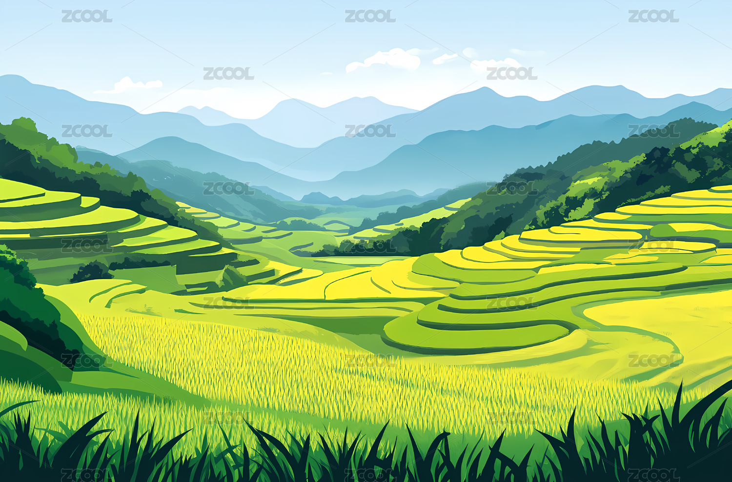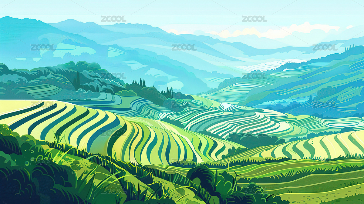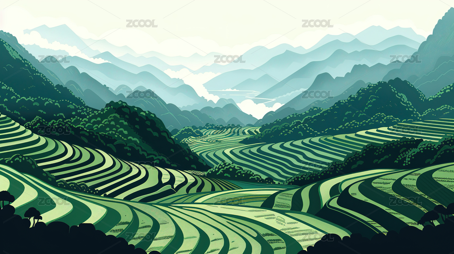 自然,户外,风景,云,天空,高山,AI数字艺术,绿色,插画,自然美