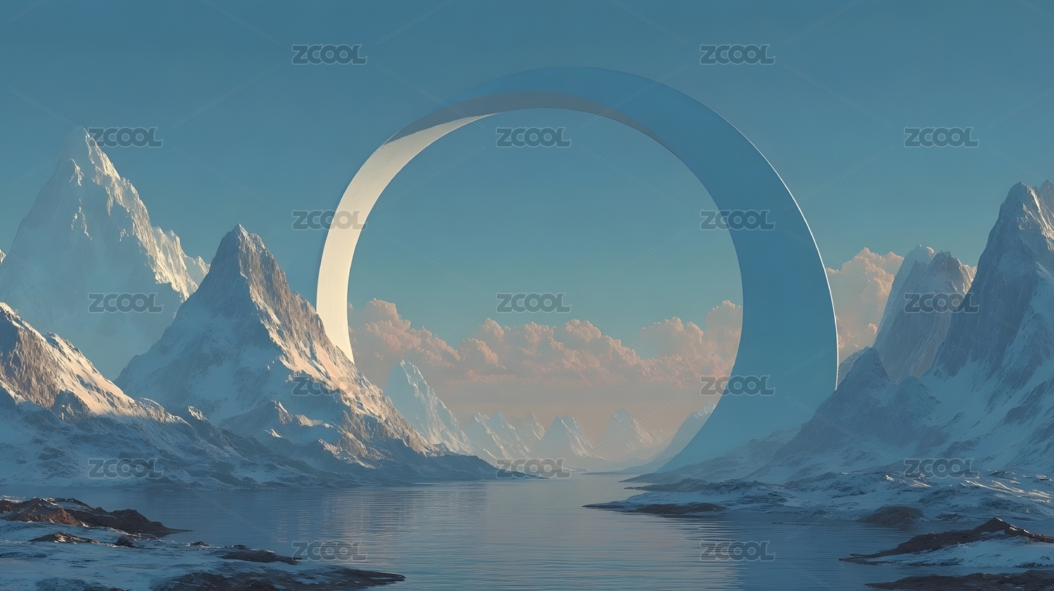 科幻,夜晚,旷野,星空,传送门,3D,天空,沙漠,圆形,光线