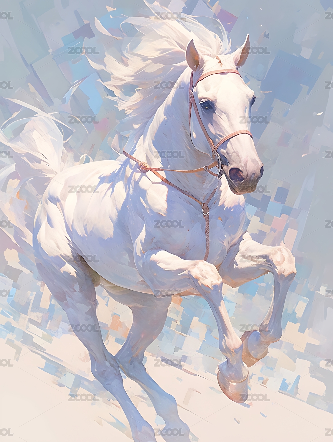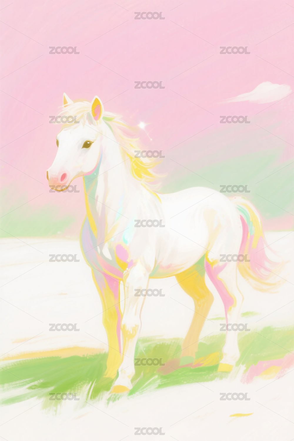 彩虹鬃毛奔跑的梦幻卡通小白马