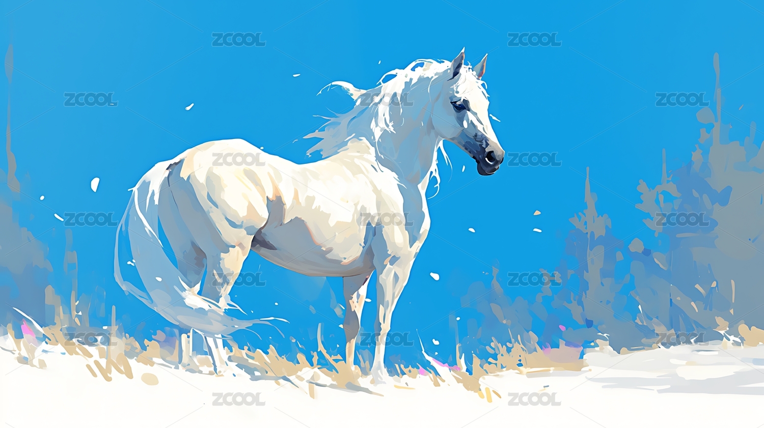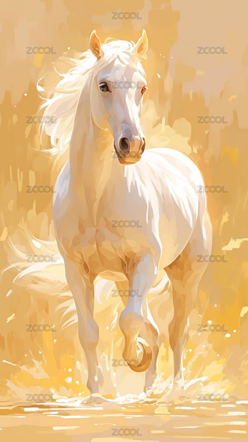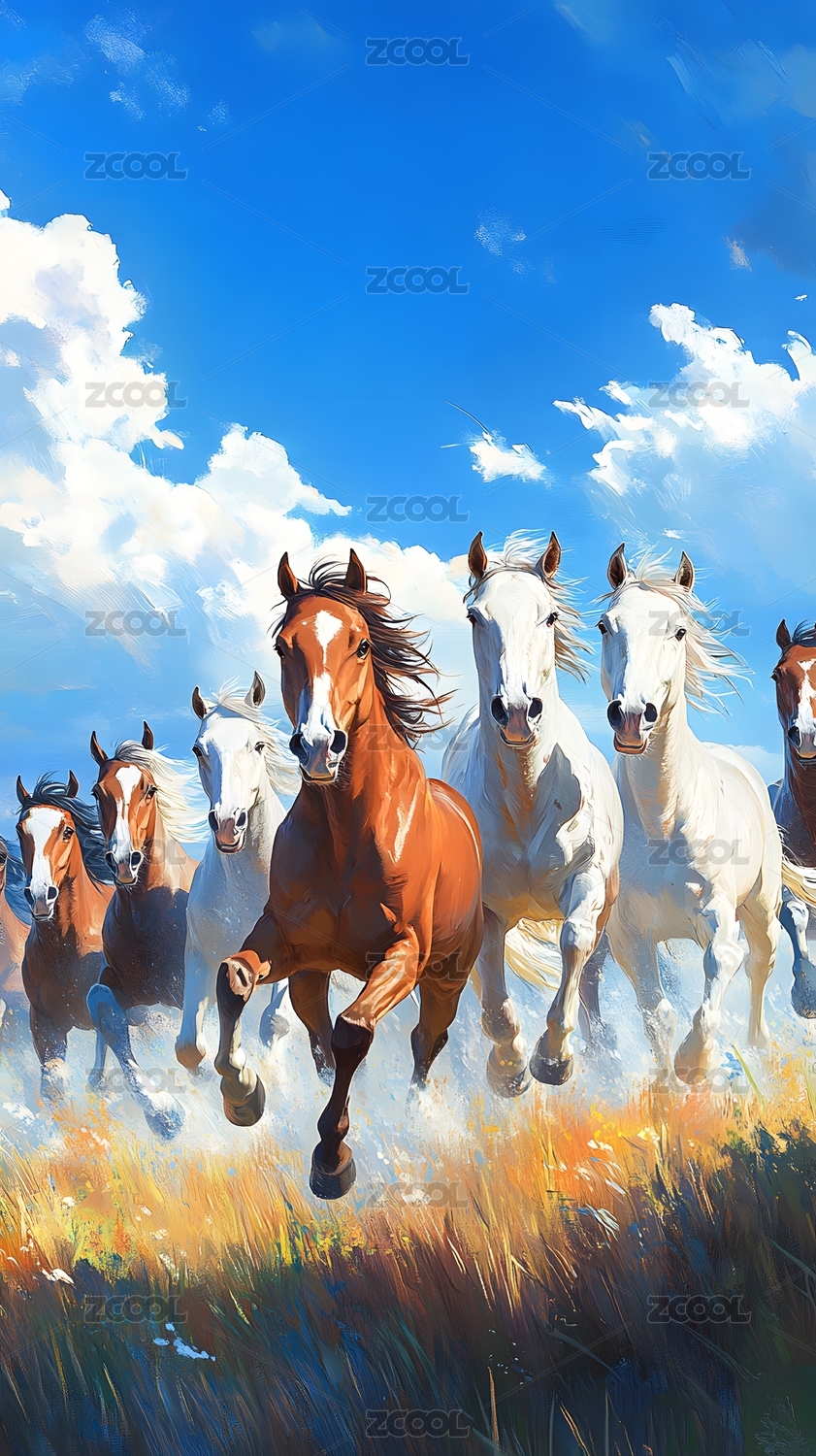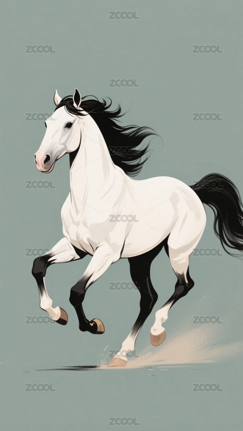 草原,奔跑,马,特写,插画,野马,马尾,马鬃,牧场,田野