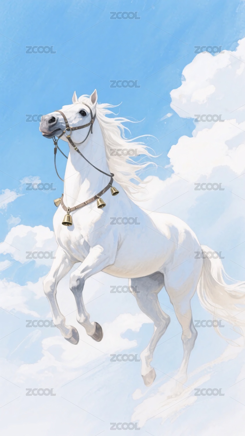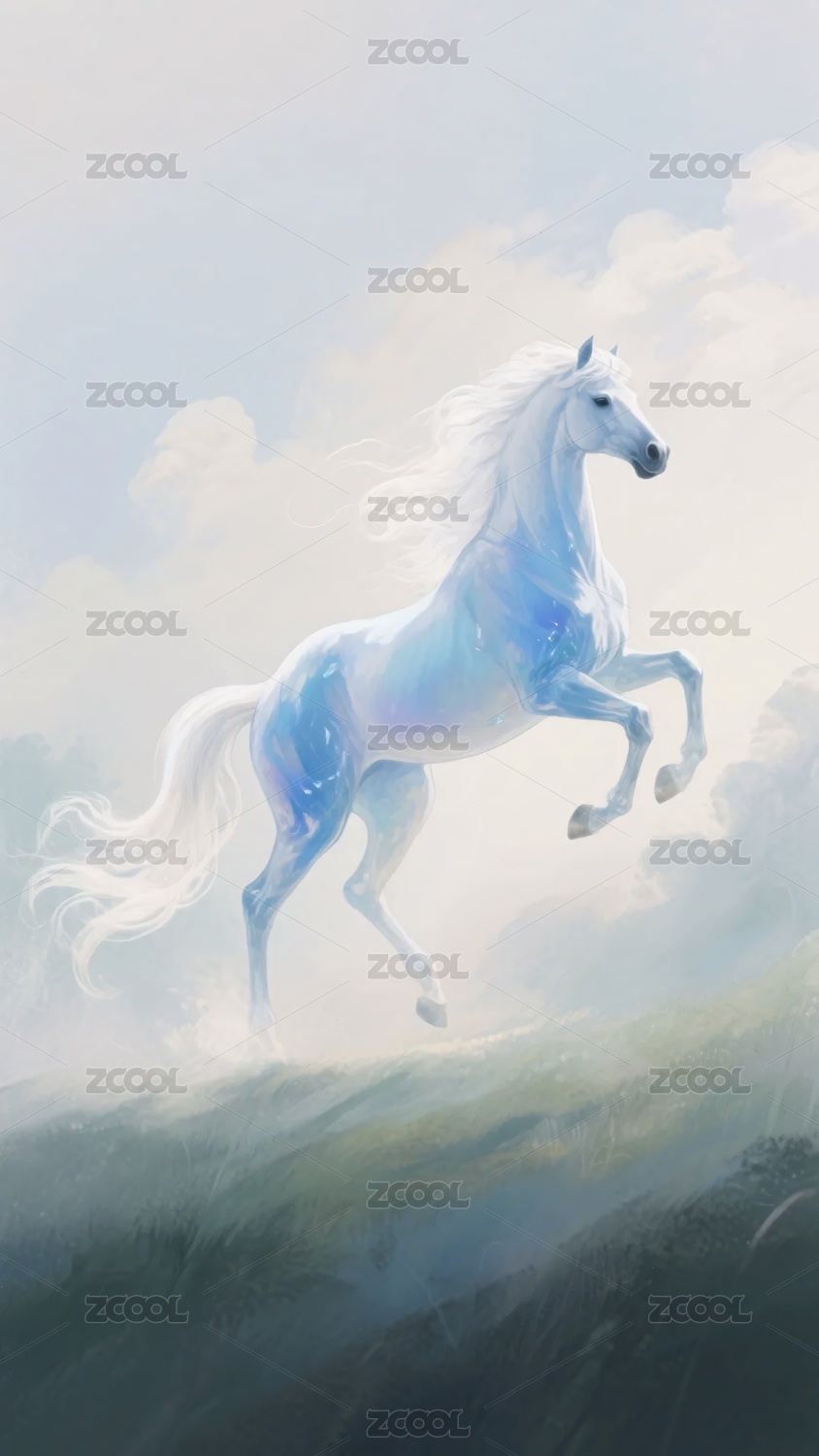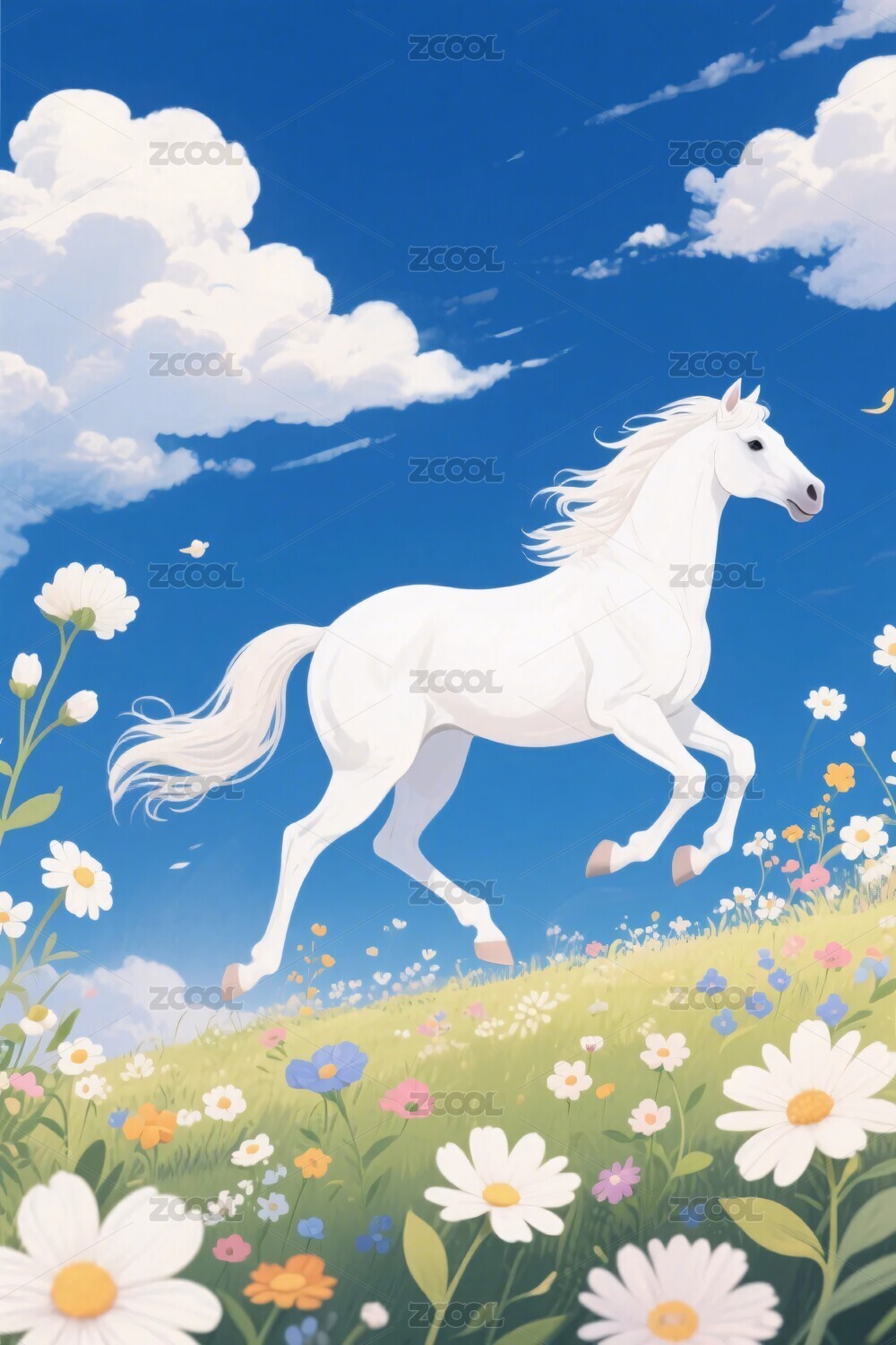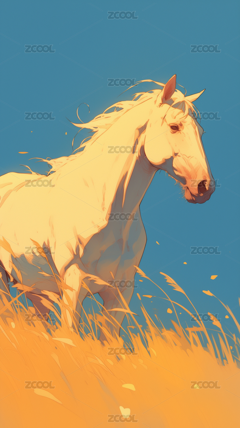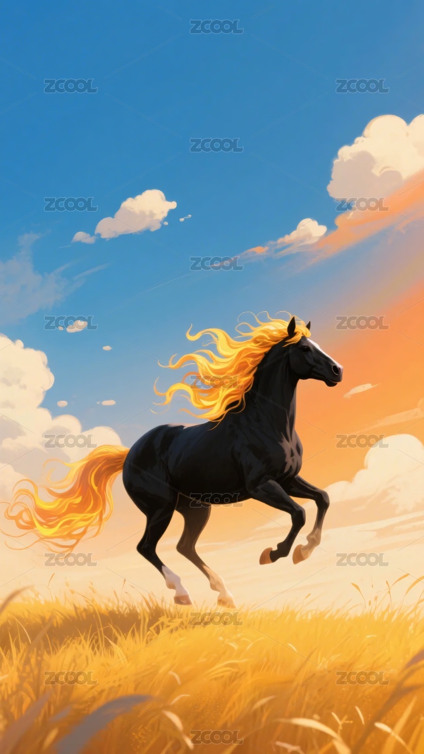 草原,奔跑,马,特写,插画,野马,马尾,马鬃,牧场,田野