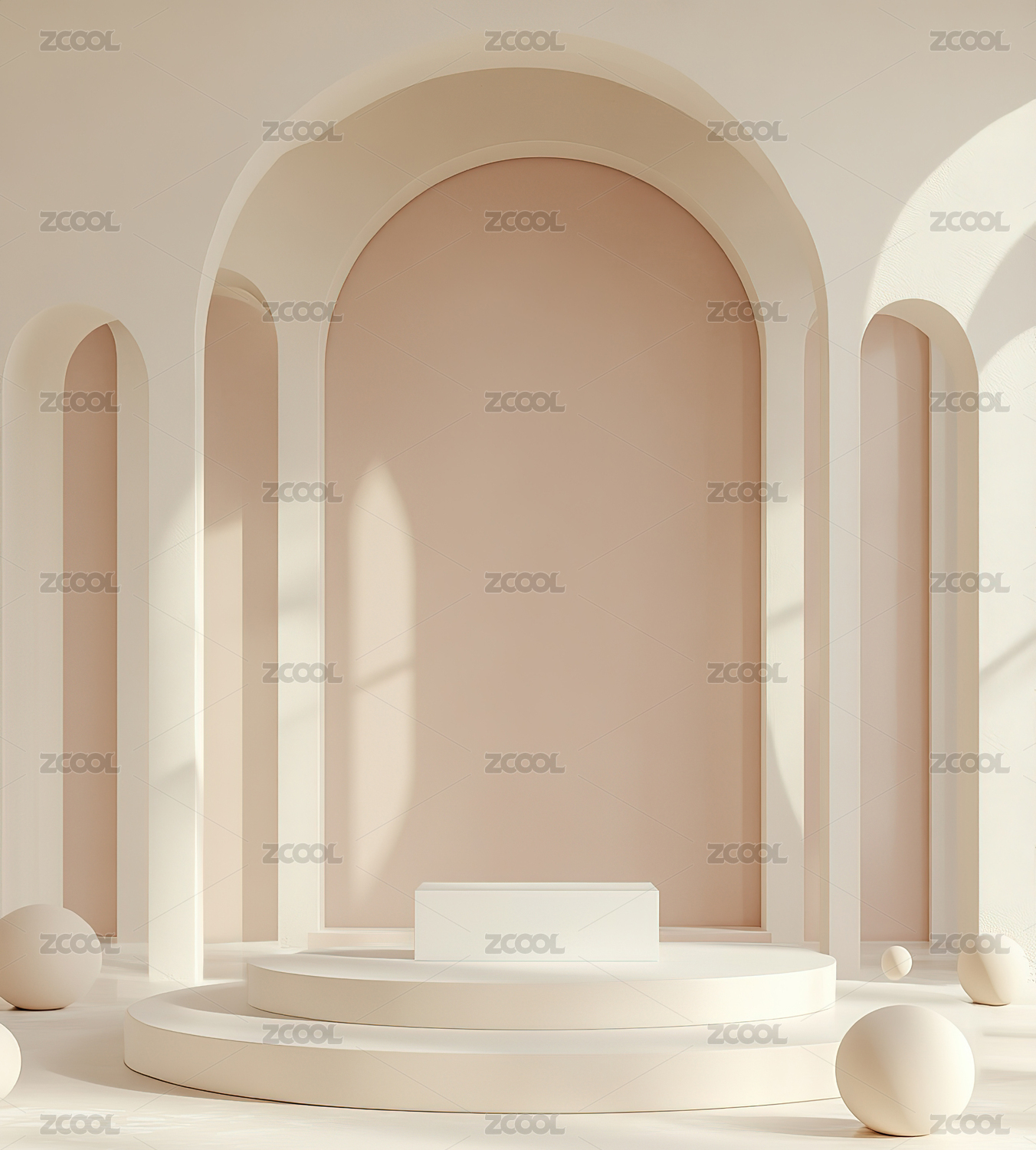 3D白色极简风拱门电商产品展台