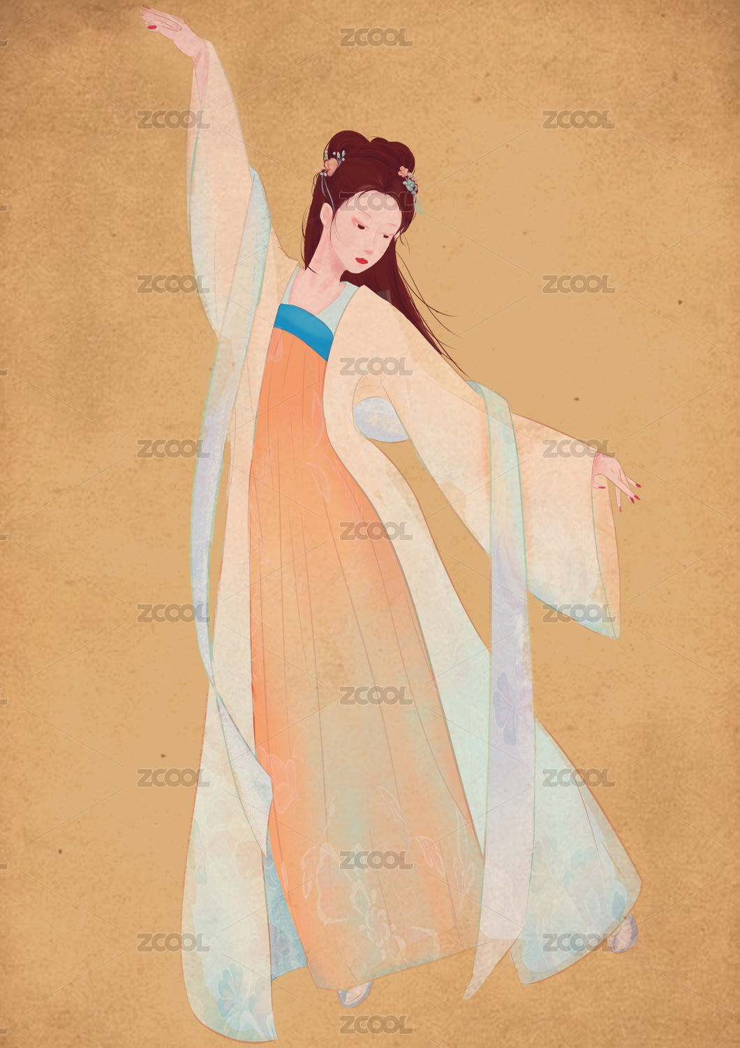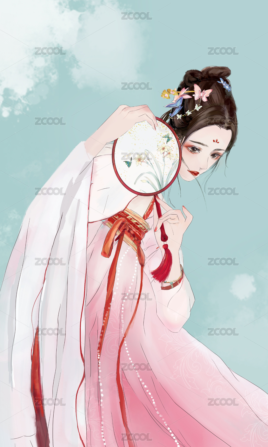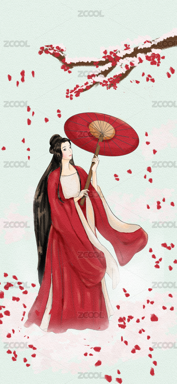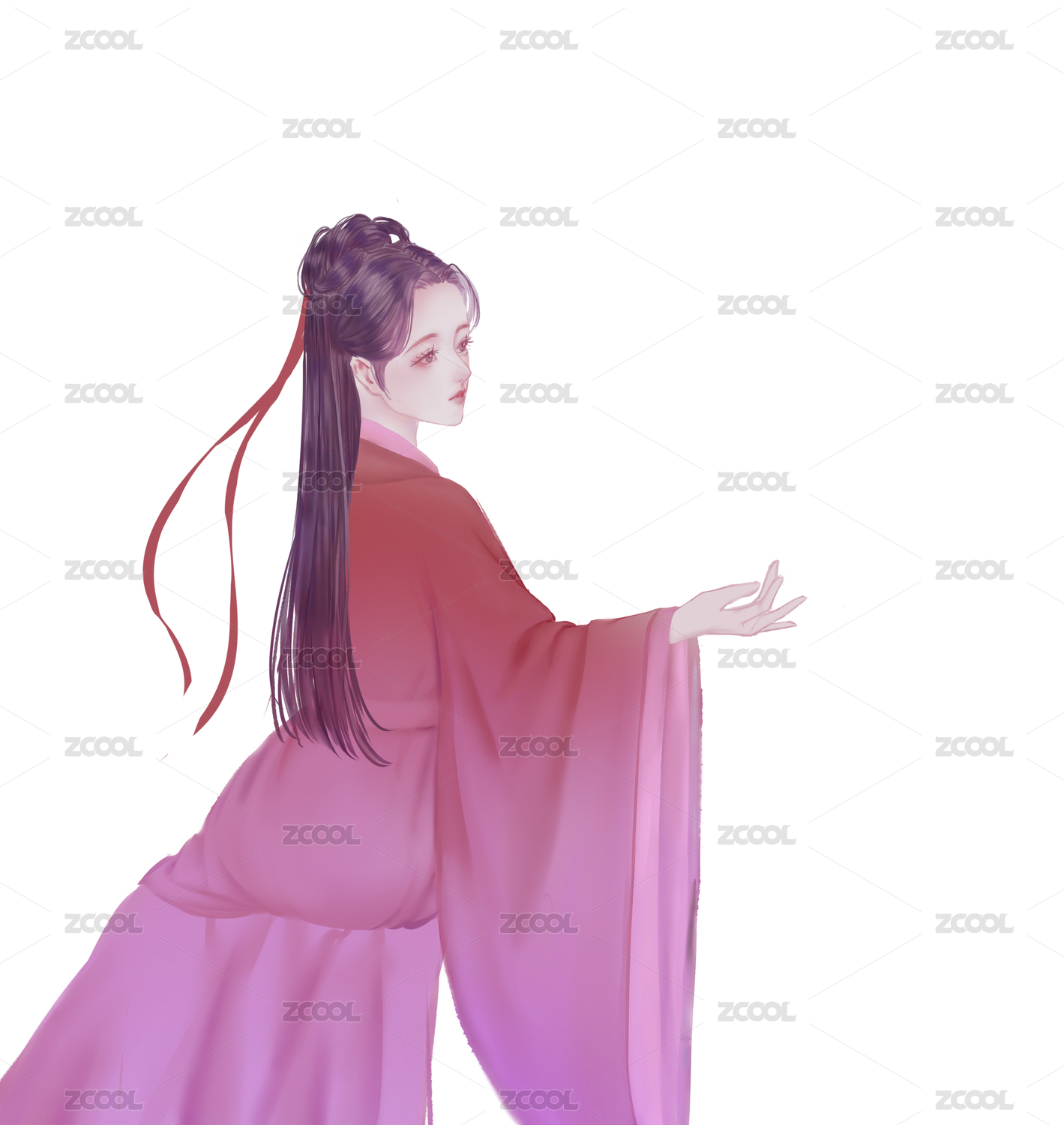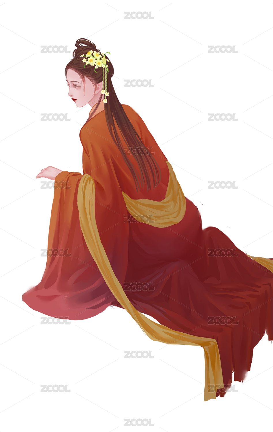 中式古风汉服古装女人跪着坐着红色衣服趴着
