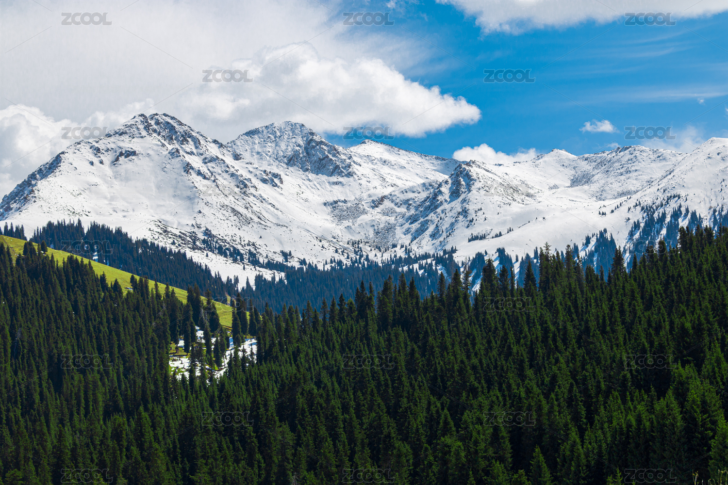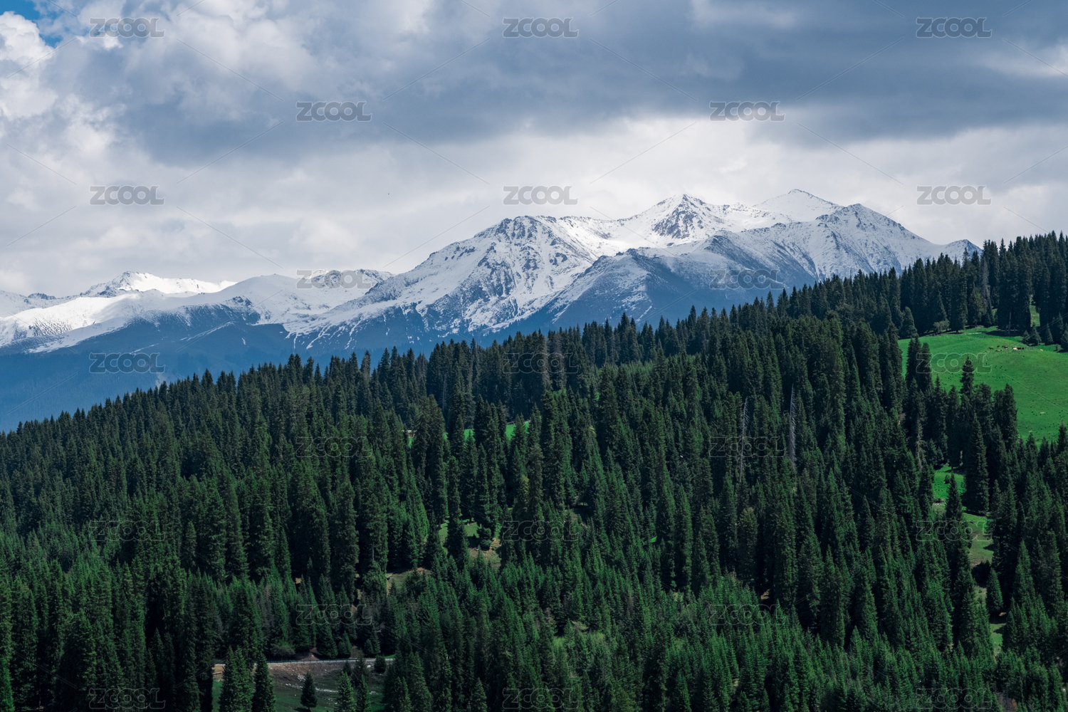中国新疆伊犁琼库什台雪山森林草原风光