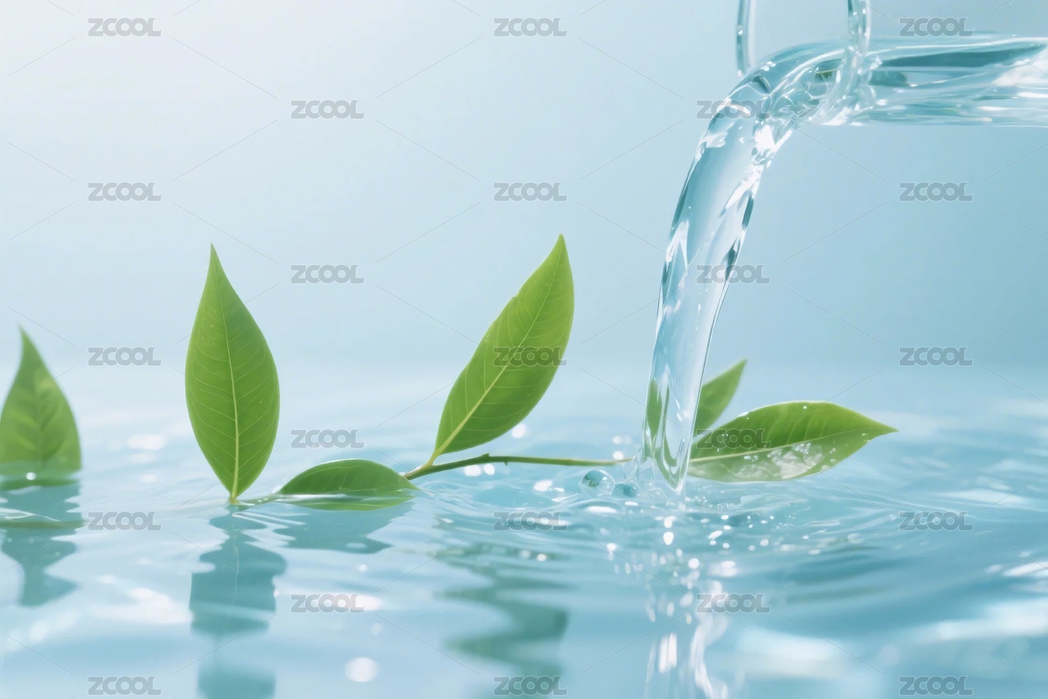 清爽的水和绿叶背景