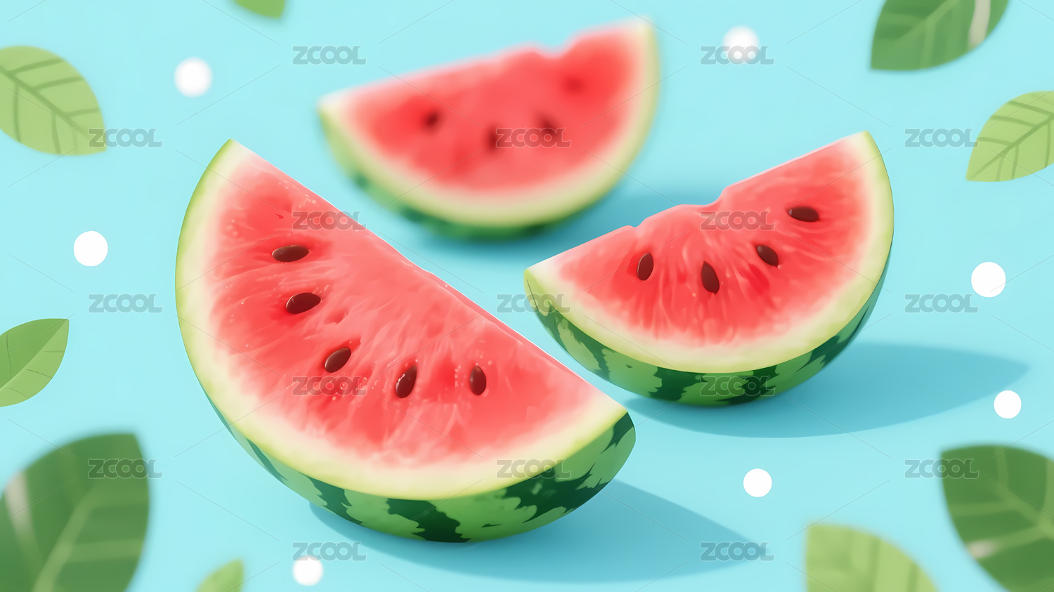 夏天解暑绿色水果西瓜果汁大暑节气美食3D