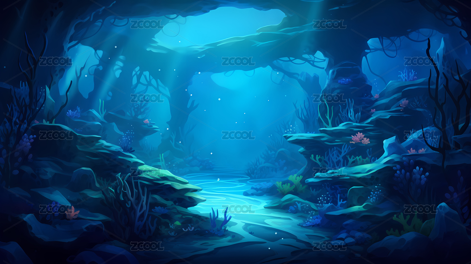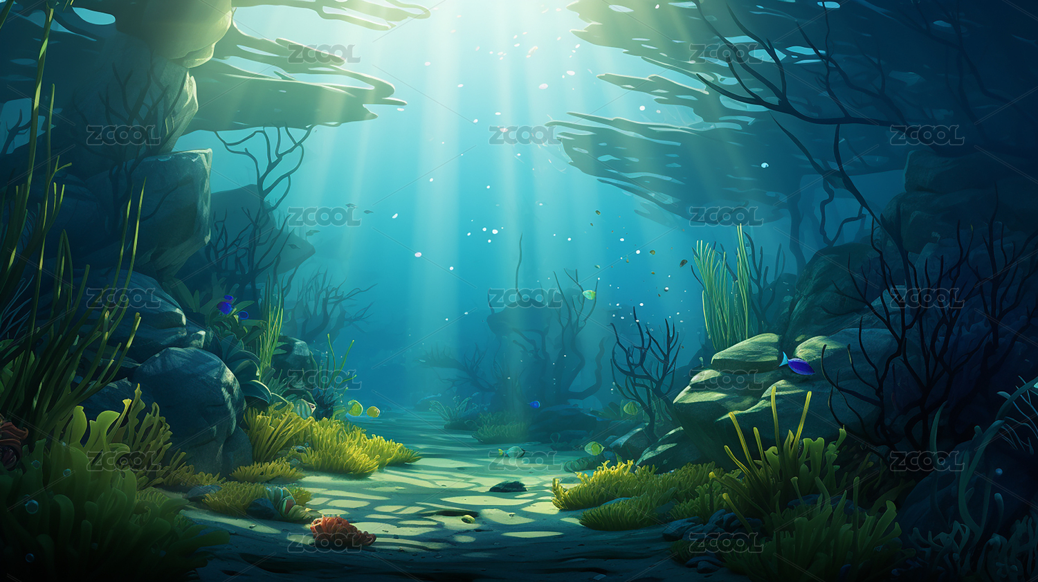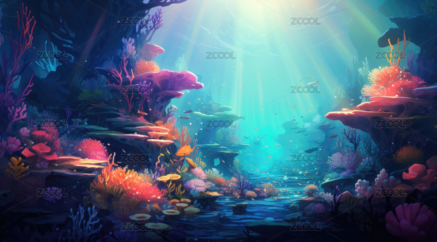 AI数字艺术,珊瑚,礁石,海洋,海洋生命,自然,鱼类,蓝色,水,无人
