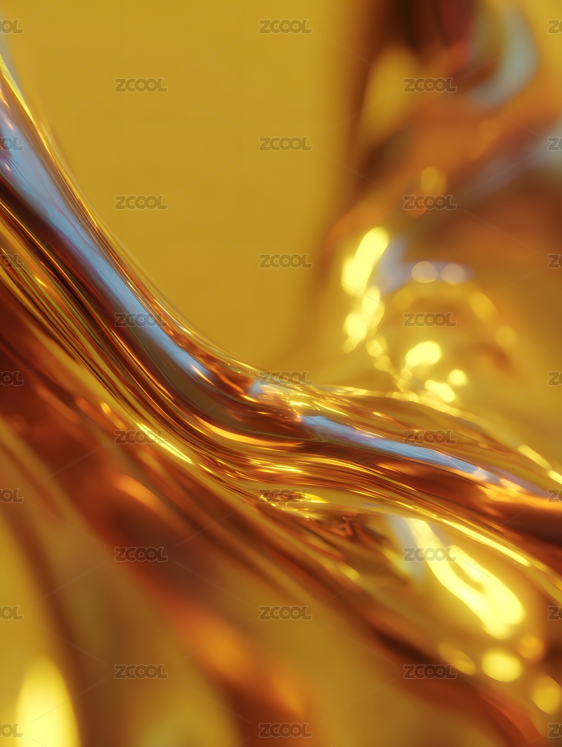 金色液体抽象流动质感画面