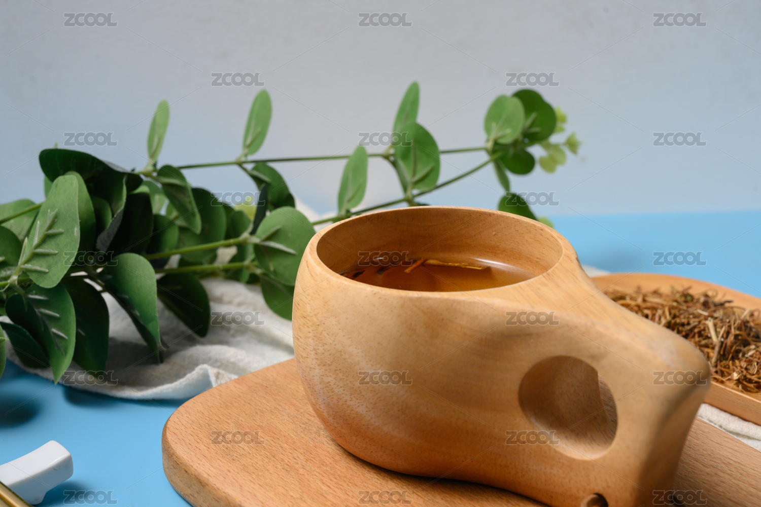 桌面上个的杯子里的甘甜可口的龙胆草茶