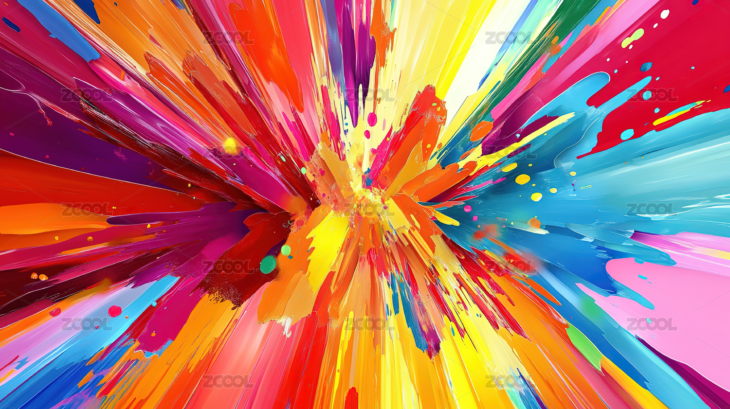 五彩缤纷的粉末向四周爆炸散开的抽象背景